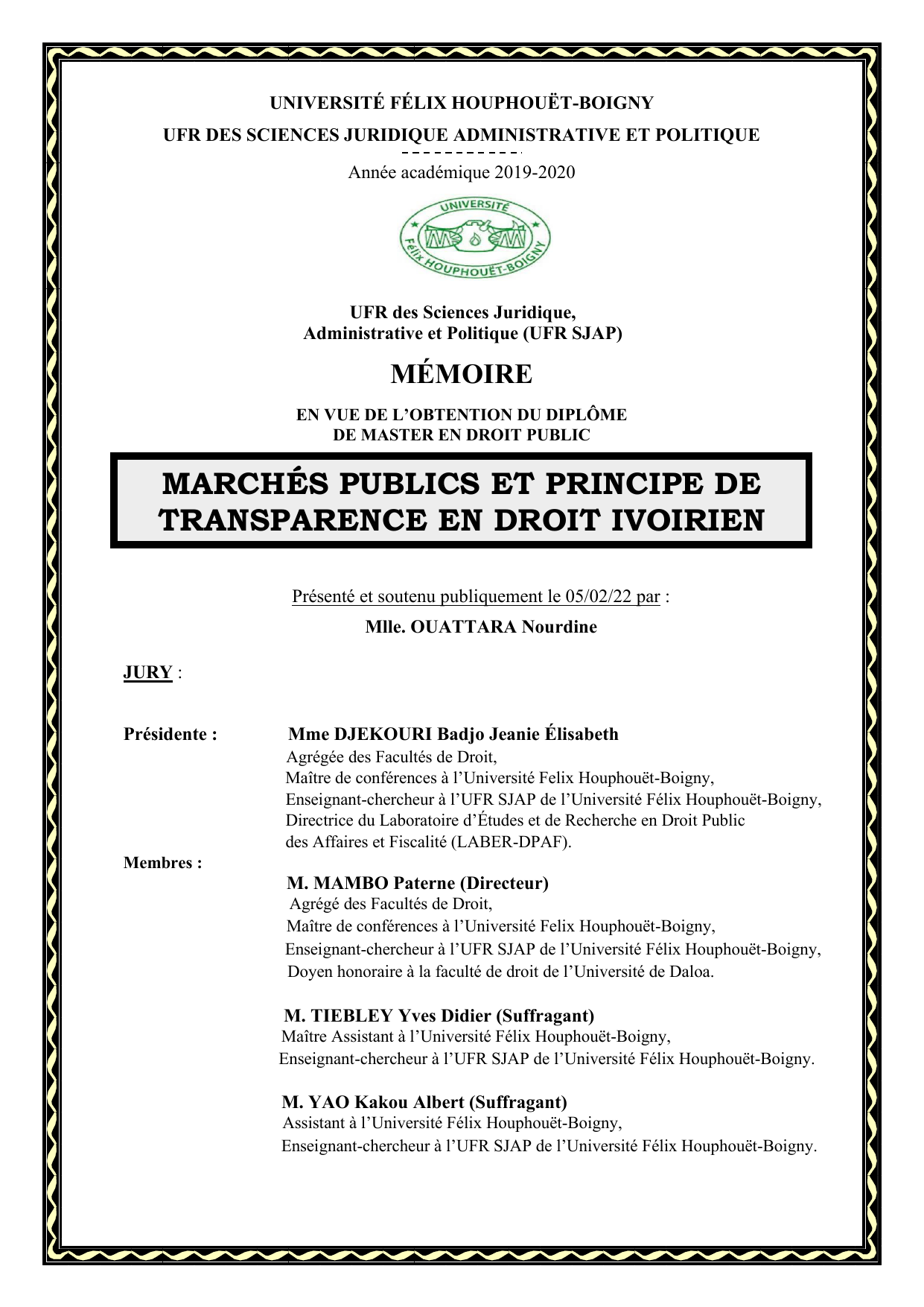 UNIVERSITÉ FÉLIX HOUPHOUËT-BOIGNY