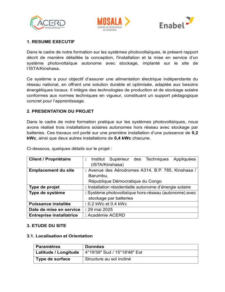 Dans le cadre de notre formation sur les systèmes photovoltaïques, le présent rapport