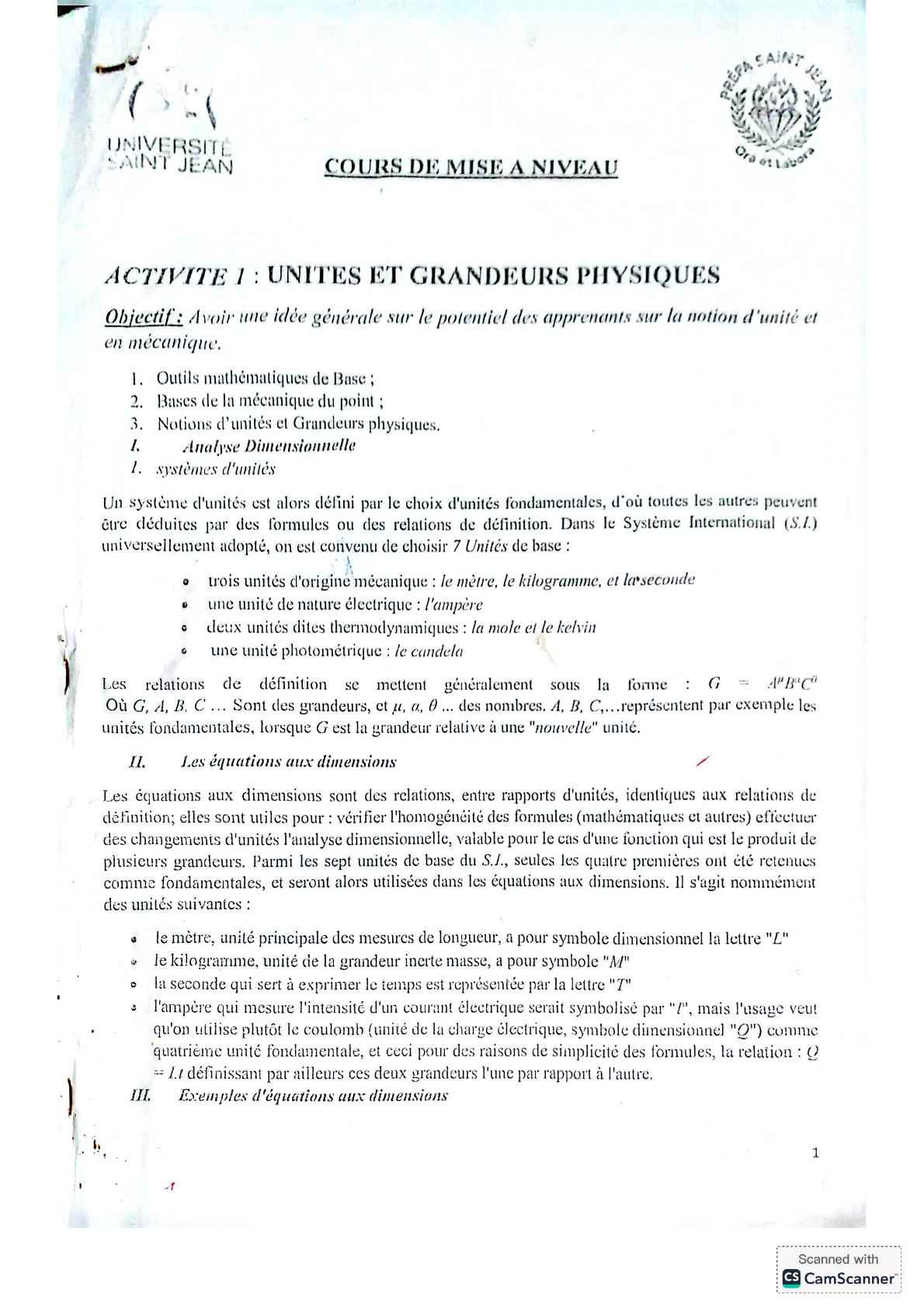 Unités et Grandeurs Physiques : Analyse Dimensionnelle (Cours)
