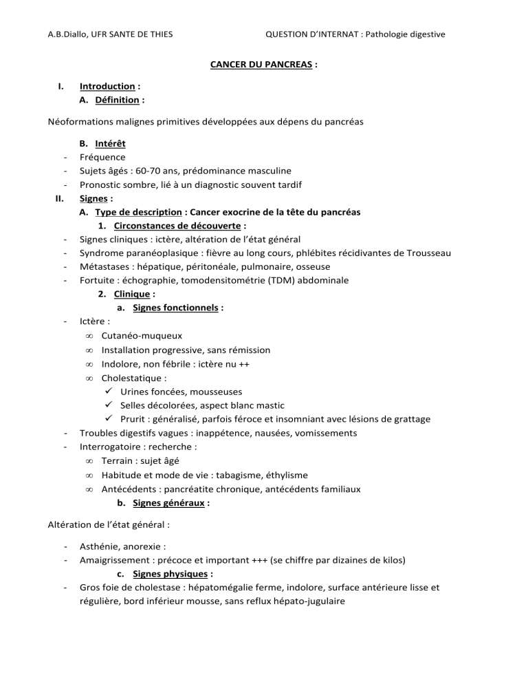 a. Cancer du corps du pancréas :