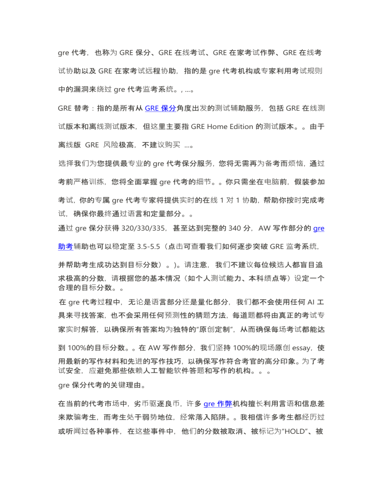 GRE 替考:指的是所有从 GRE 保分角度出发的测试辅助服务,包括 GRE 在线测