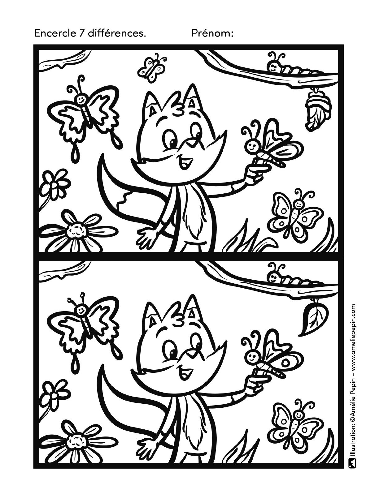 Jeu des 7 différences : Renard, papillons et fleurs - Amélie Pepin