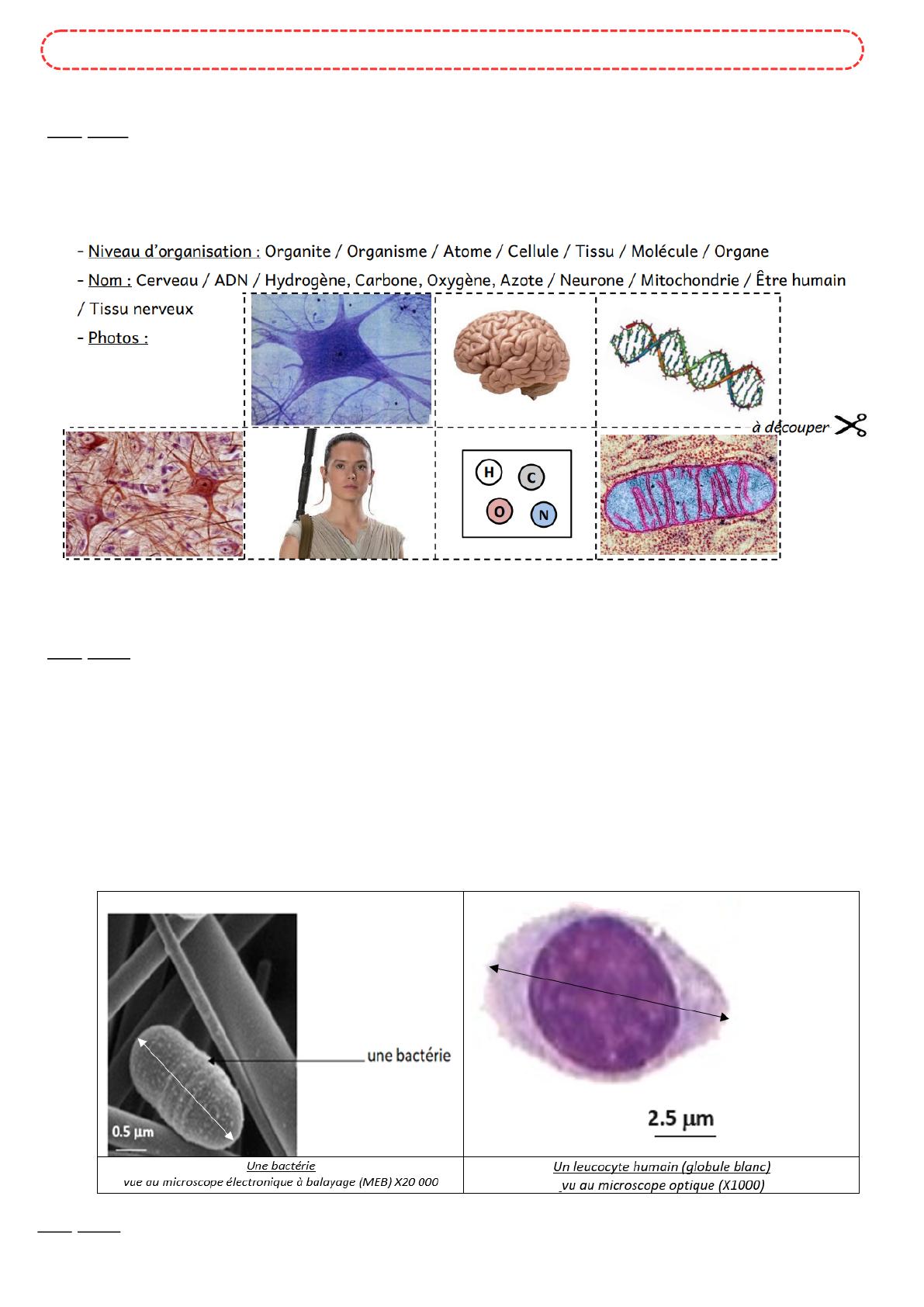 2.Donner l’unité associée à l’ordre de grandeur d’une cellule.