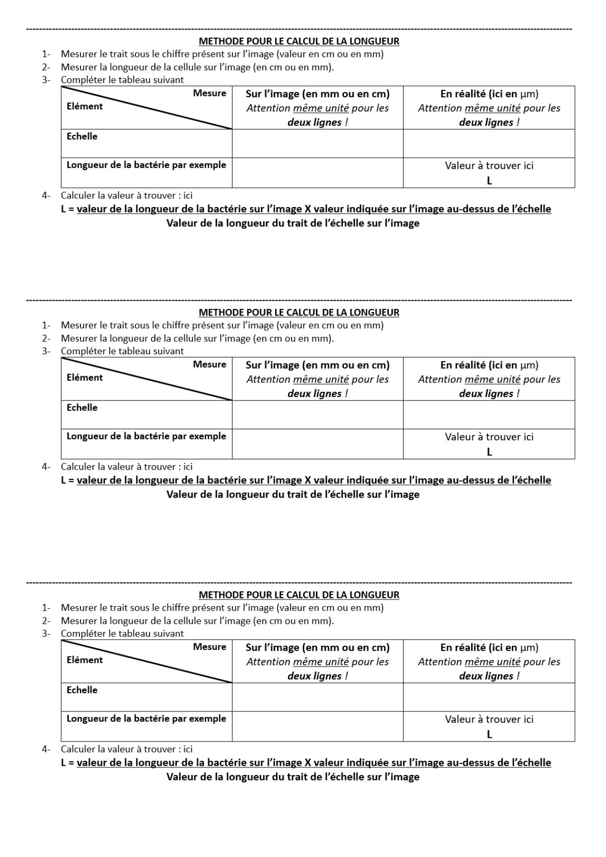 1. A l’aide de l’échelle présente sur la photographie, calculer la longueur réelle d’une bactérie (organisme