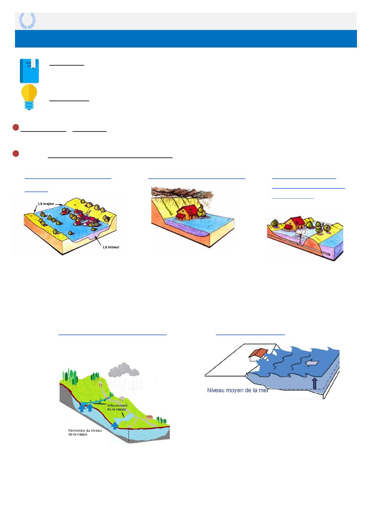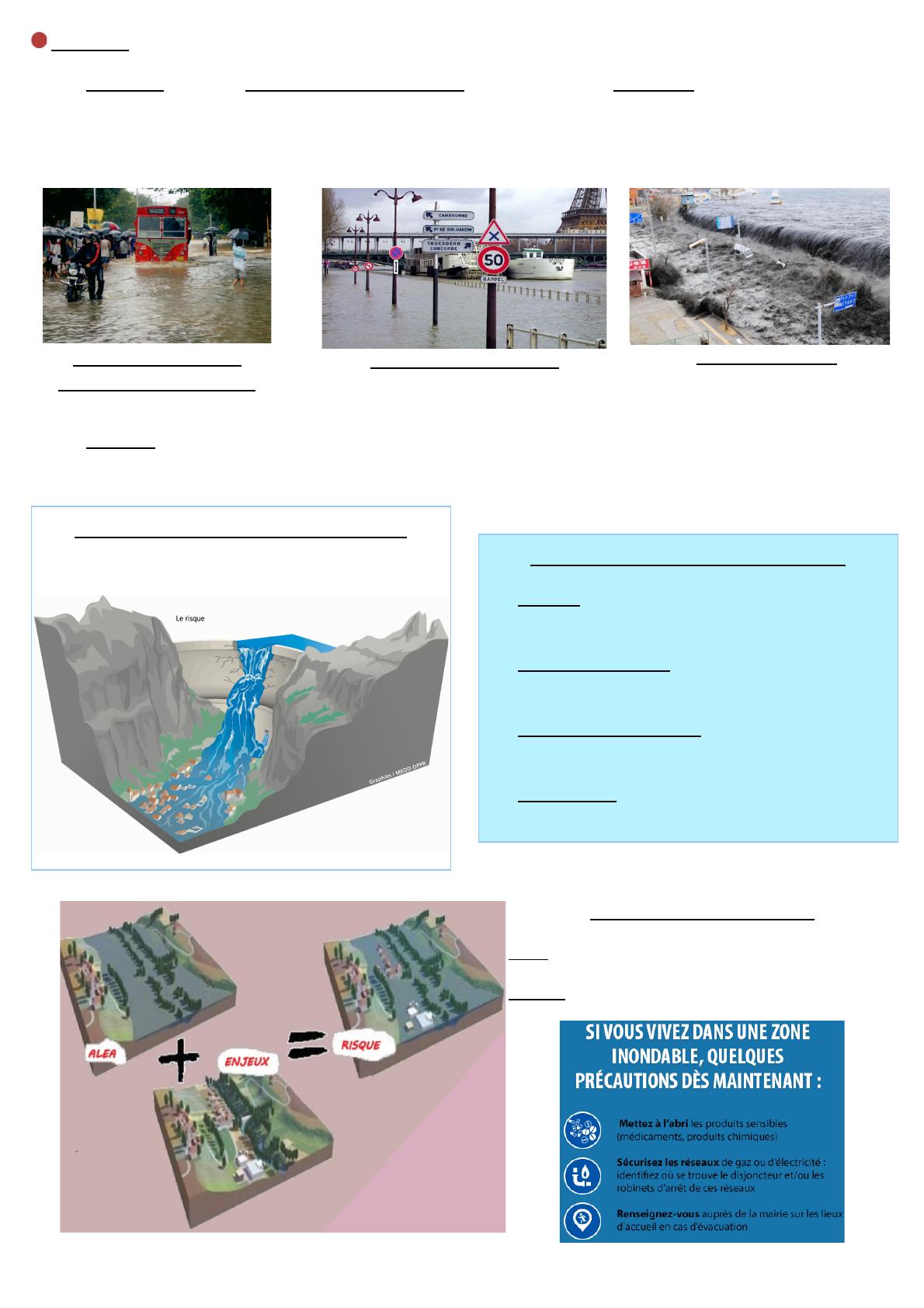 Vocabulaire : submersion, naturelle, humaines, phénomènes météorologiques, phénomènes