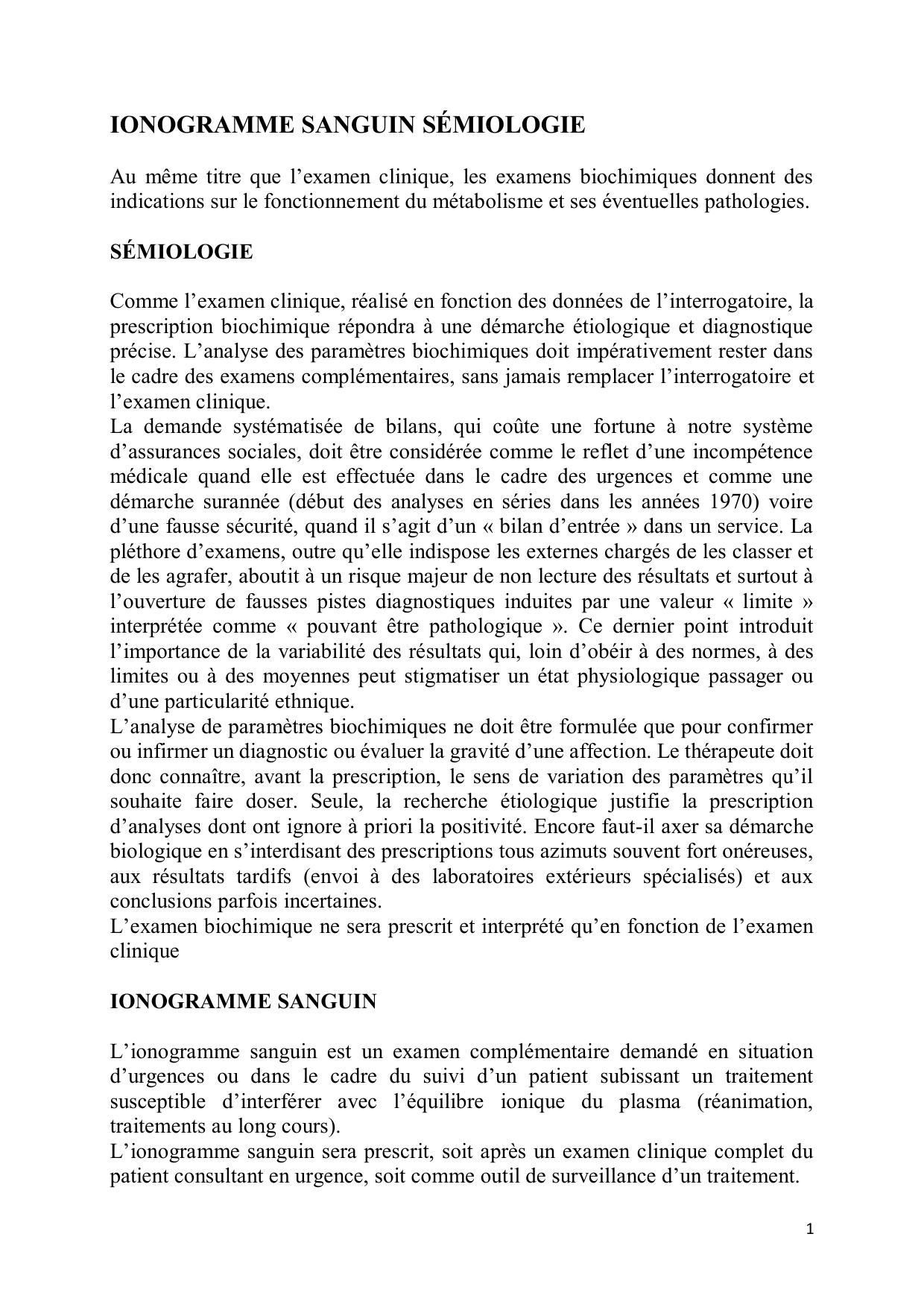 IONOGRAMME SANGUIN SÉMIOLOGIE