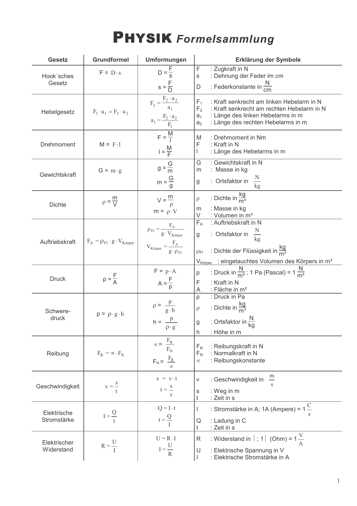 Fizyka: Zbiór Formuł i Objaśnień – Mechanika, Elektryczność