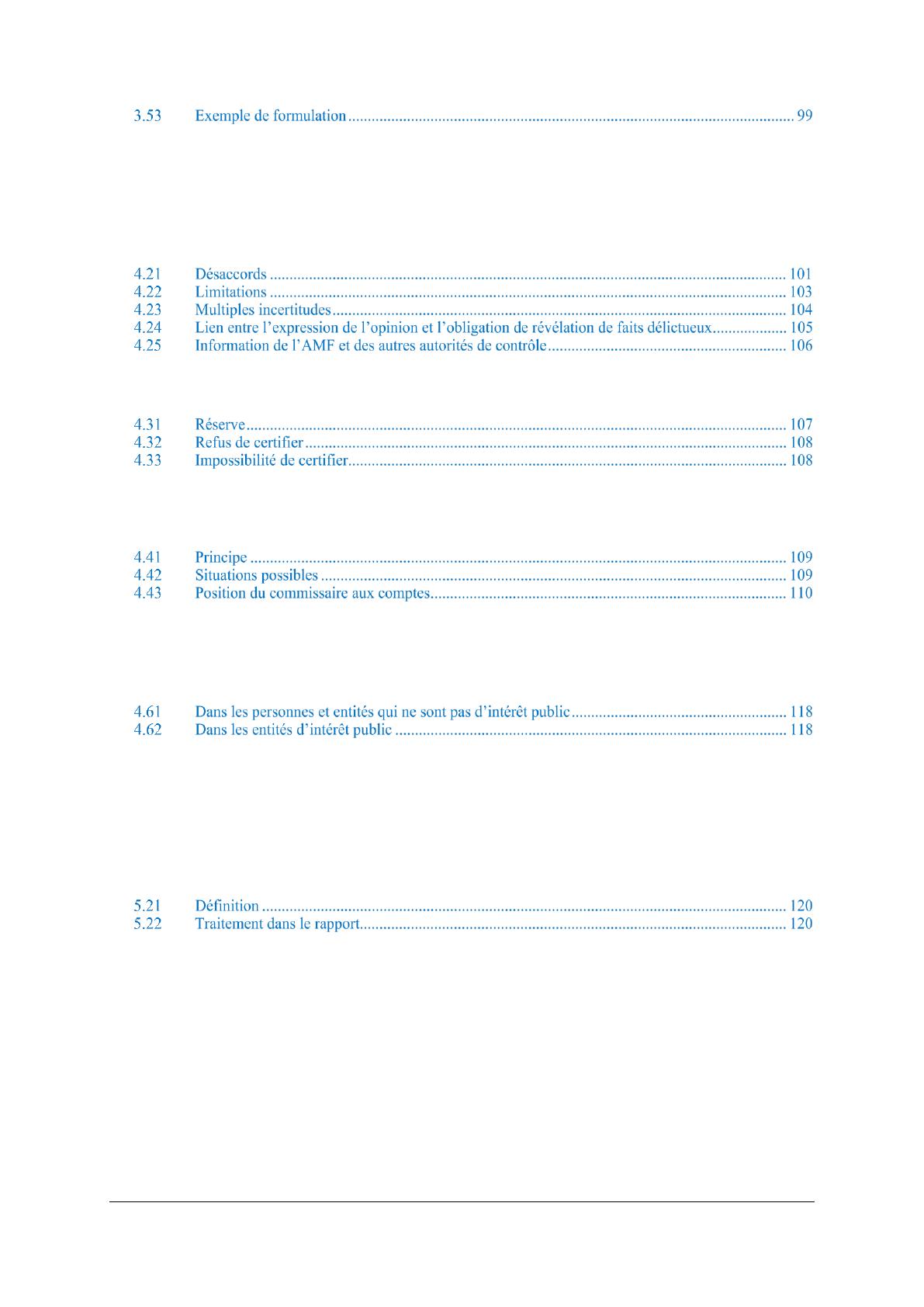 4.3 MOTIVATION DE LA RÉSERVE, DU REFUS OU DE LIMPOSSIBILITÉ DE CERTIFIER ....................... 107
