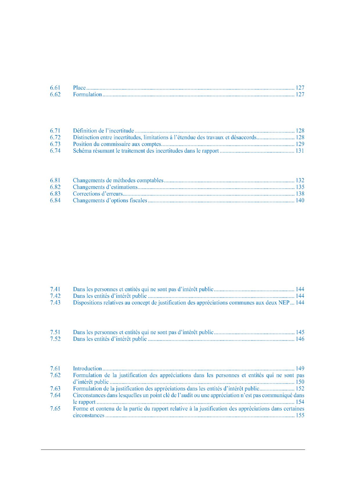 7.3 FINALITÉ DE LA JUSTIFICATION DES APPRÉCIATIONS ET OBJET DES NEP 701 ET 702 ................ 143