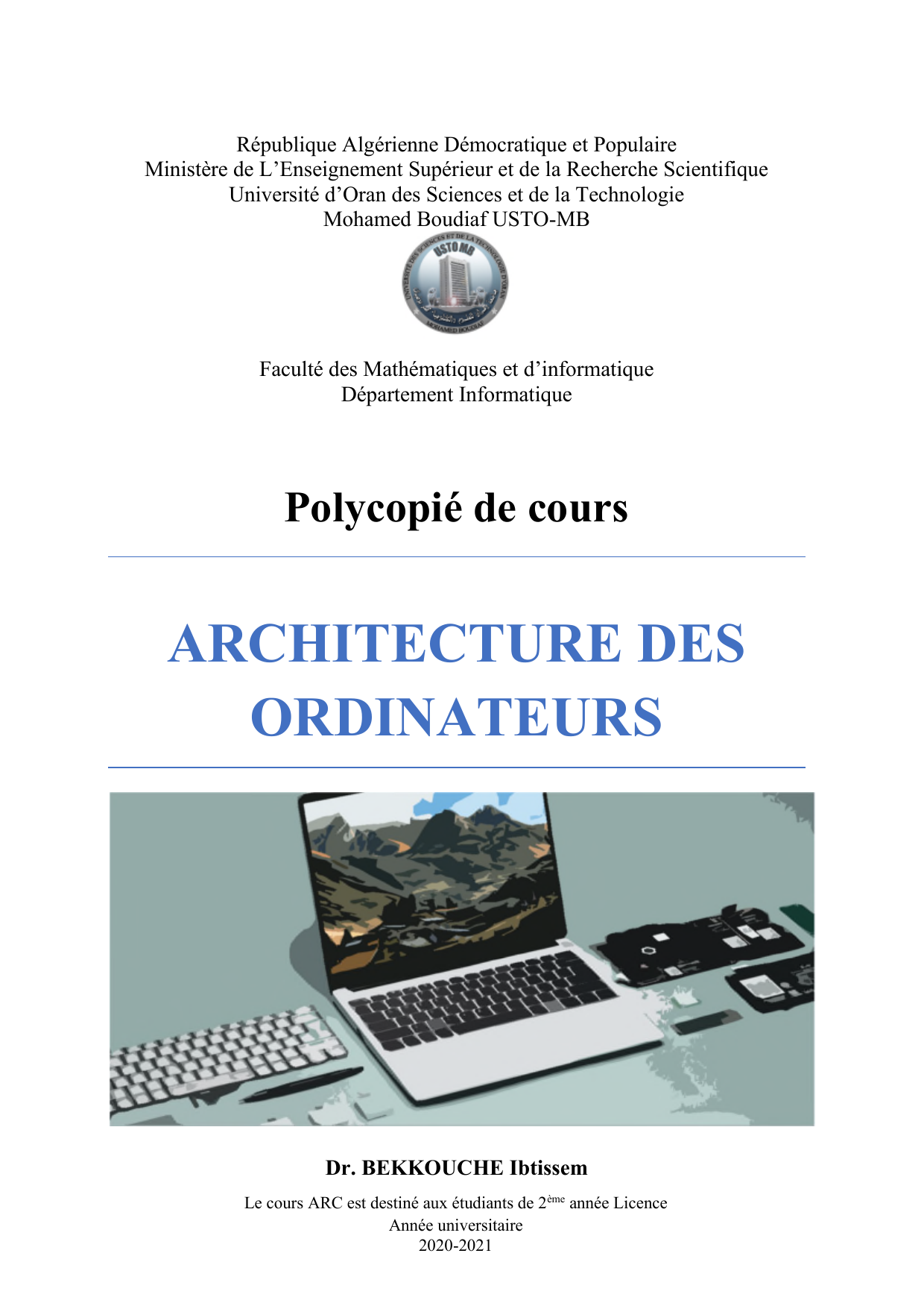 Dr. BEKKOUCHE Ibtissem. Cours : Architecture des Ordinateurs