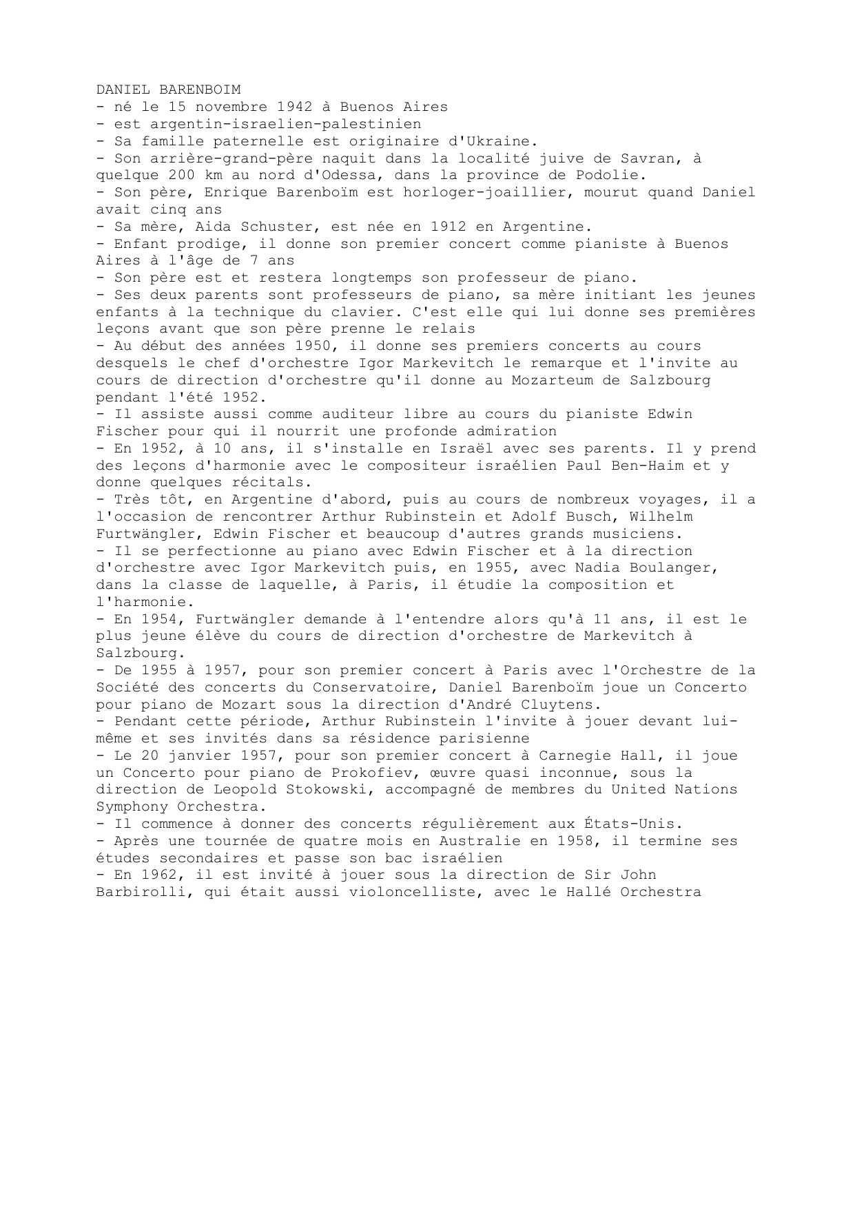 - Enfant prodige, il donne son premier concert comme pianiste à Buenos