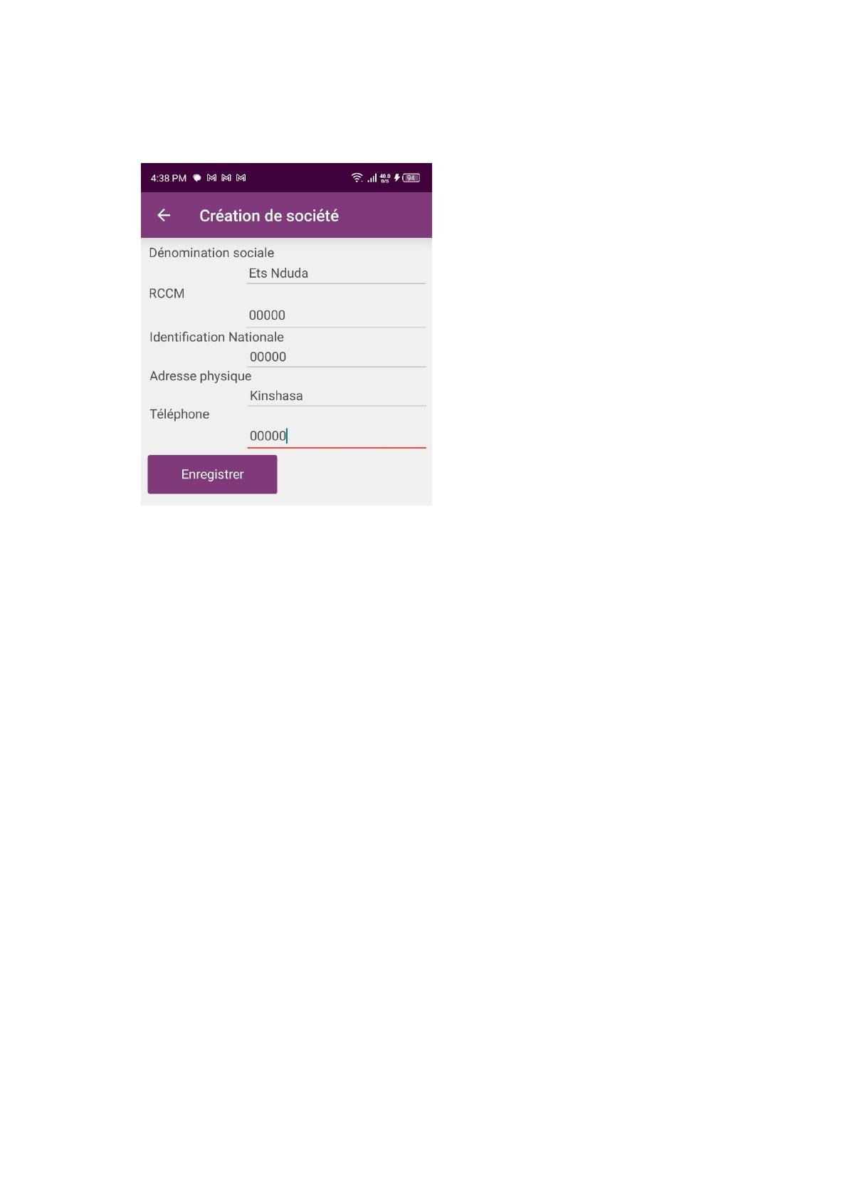 fenêtre, pour saisir les informaons de la société.