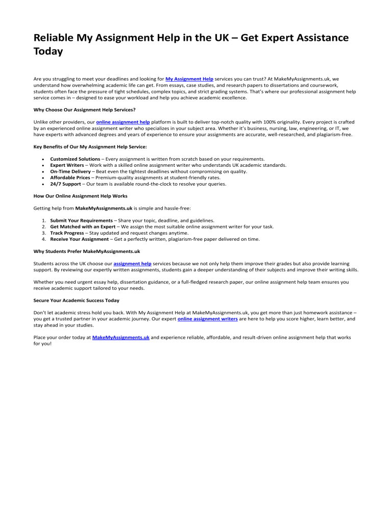 Reliable My Assignment Help in the UK – Get Expert Assistance Today