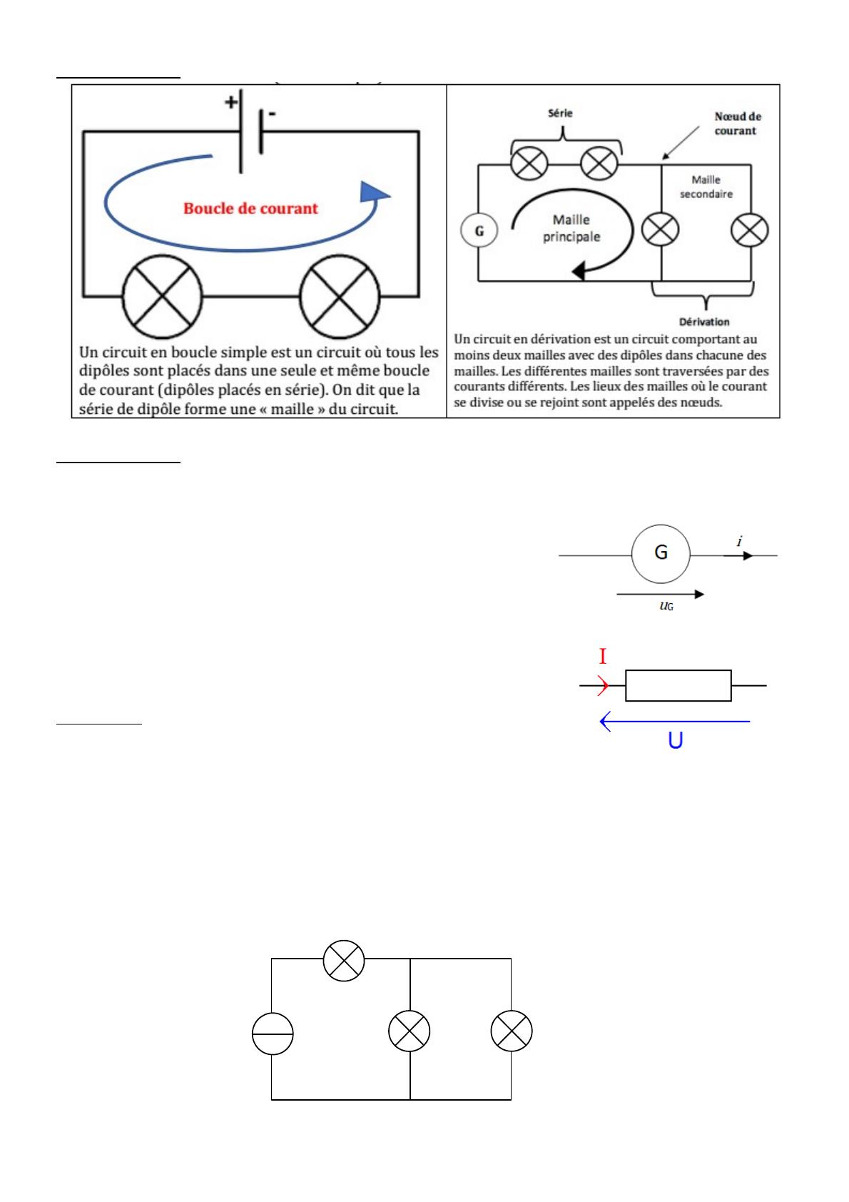 Loi des mailles : Dans une maille, la …...................... algébrique des tensions (en faisant attention