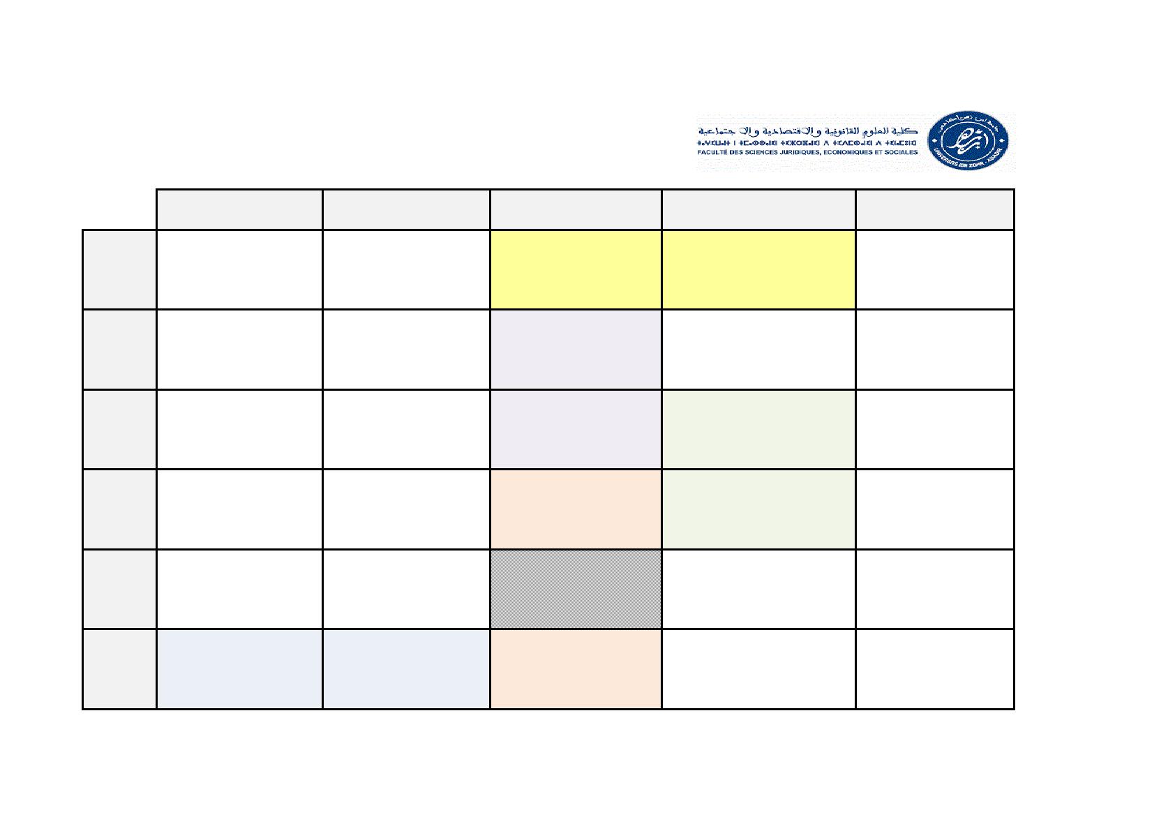 Emploi du temps Semestre 1 : Filière Economie - Tronc commun