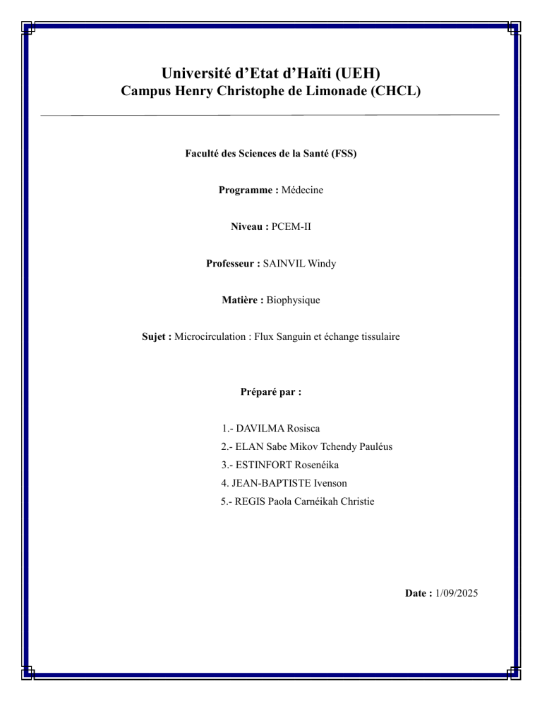Rôle essentiel de la microcirculation dans les échanges entre le sang et les tissus
