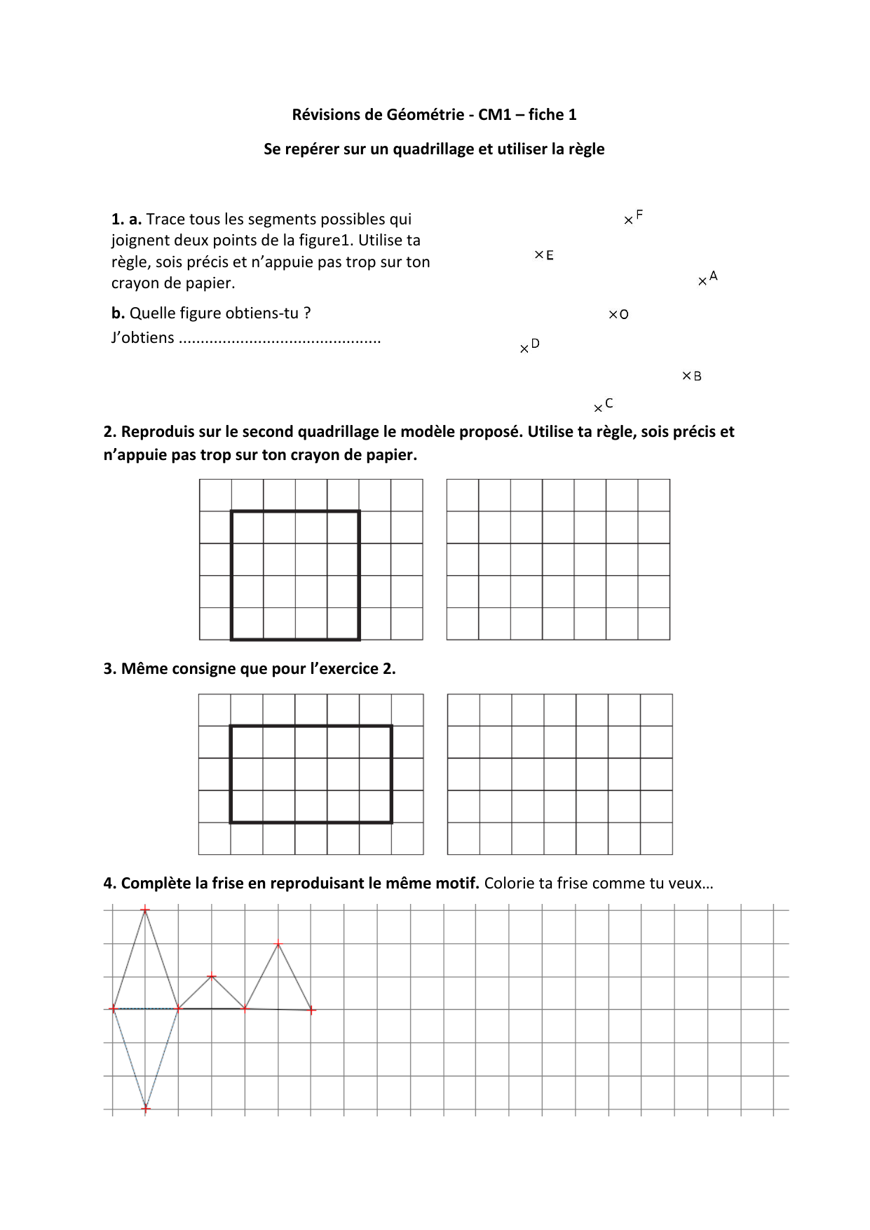 Révisions Géométrie CM1 - Fiche 1: Quadrillage et Règle