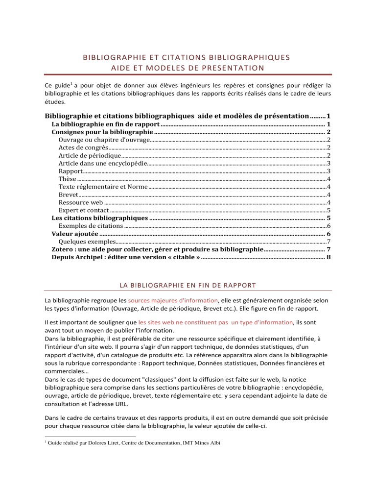 Guide de bibliographie et citations pour rapports d'ingénieurs