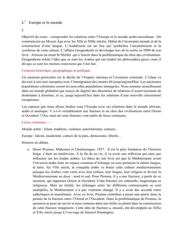 Europe et Monde Arabe: Relations Historiques - Syllabus