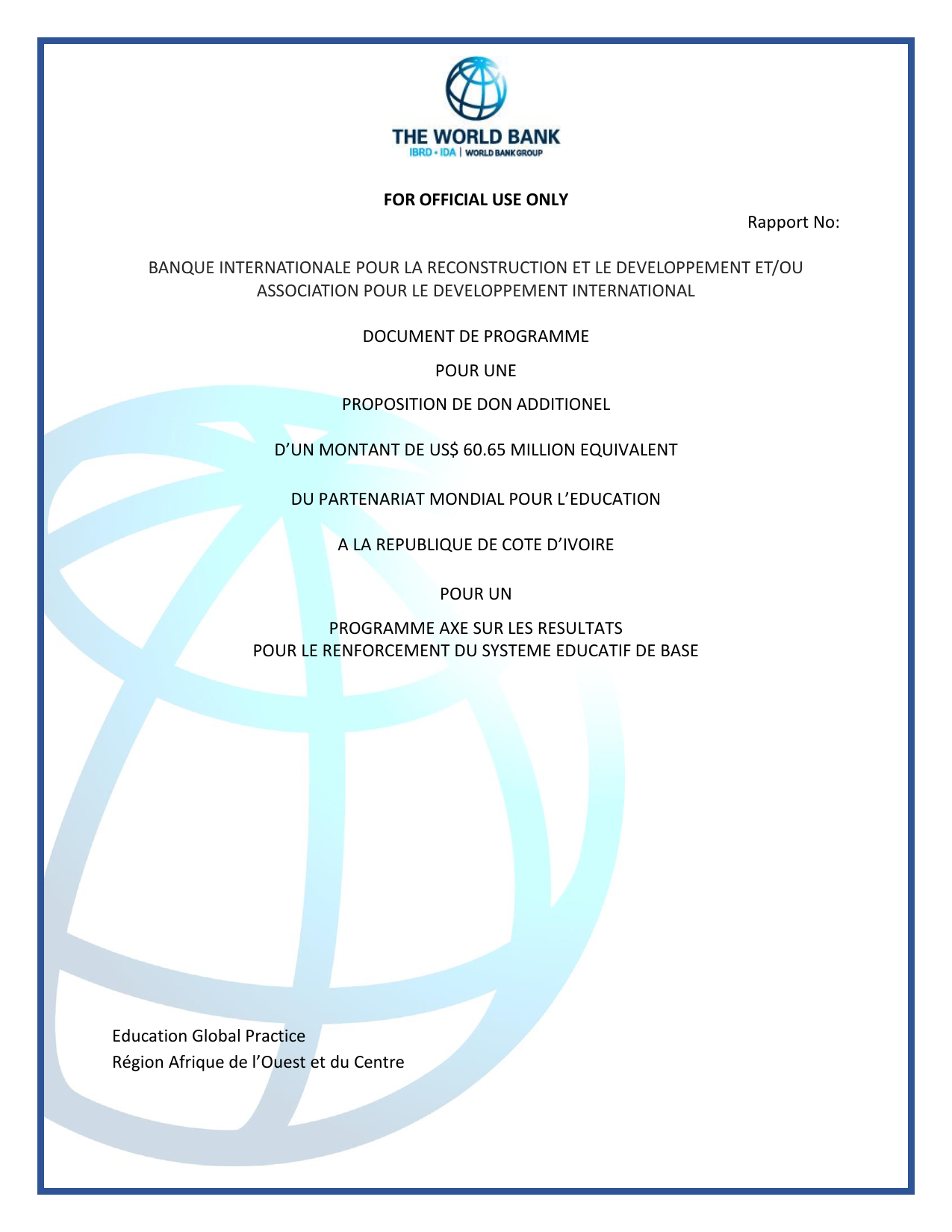 Financement additionnel éducation Côte d'Ivoire - Banque Mondiale