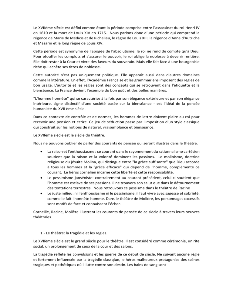 Le XVIIe siècle : Absolutisme, Littérature et Théâtre Classique Français