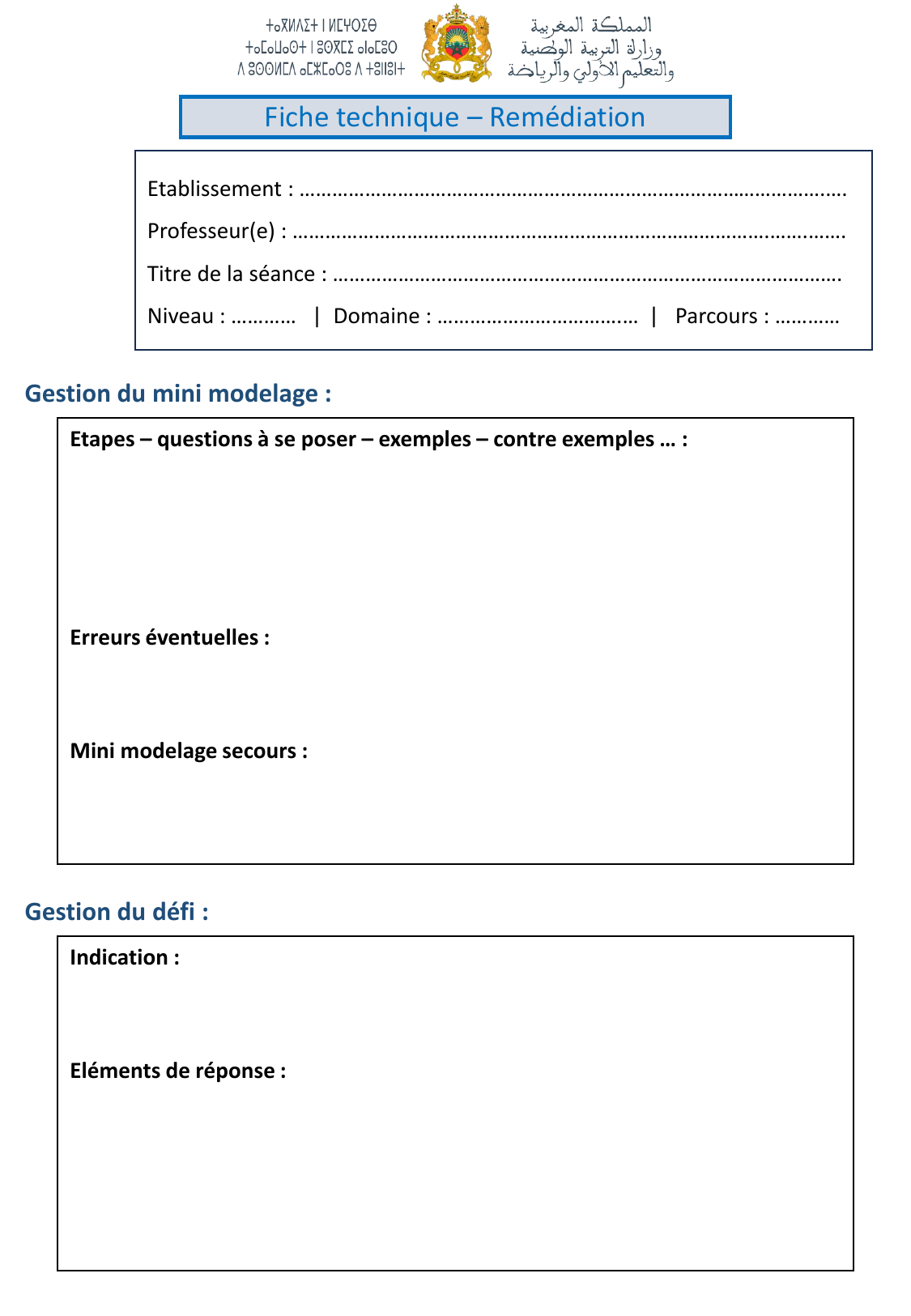 Fiche Technique Remédiation | Plan de Séance Pédagogique