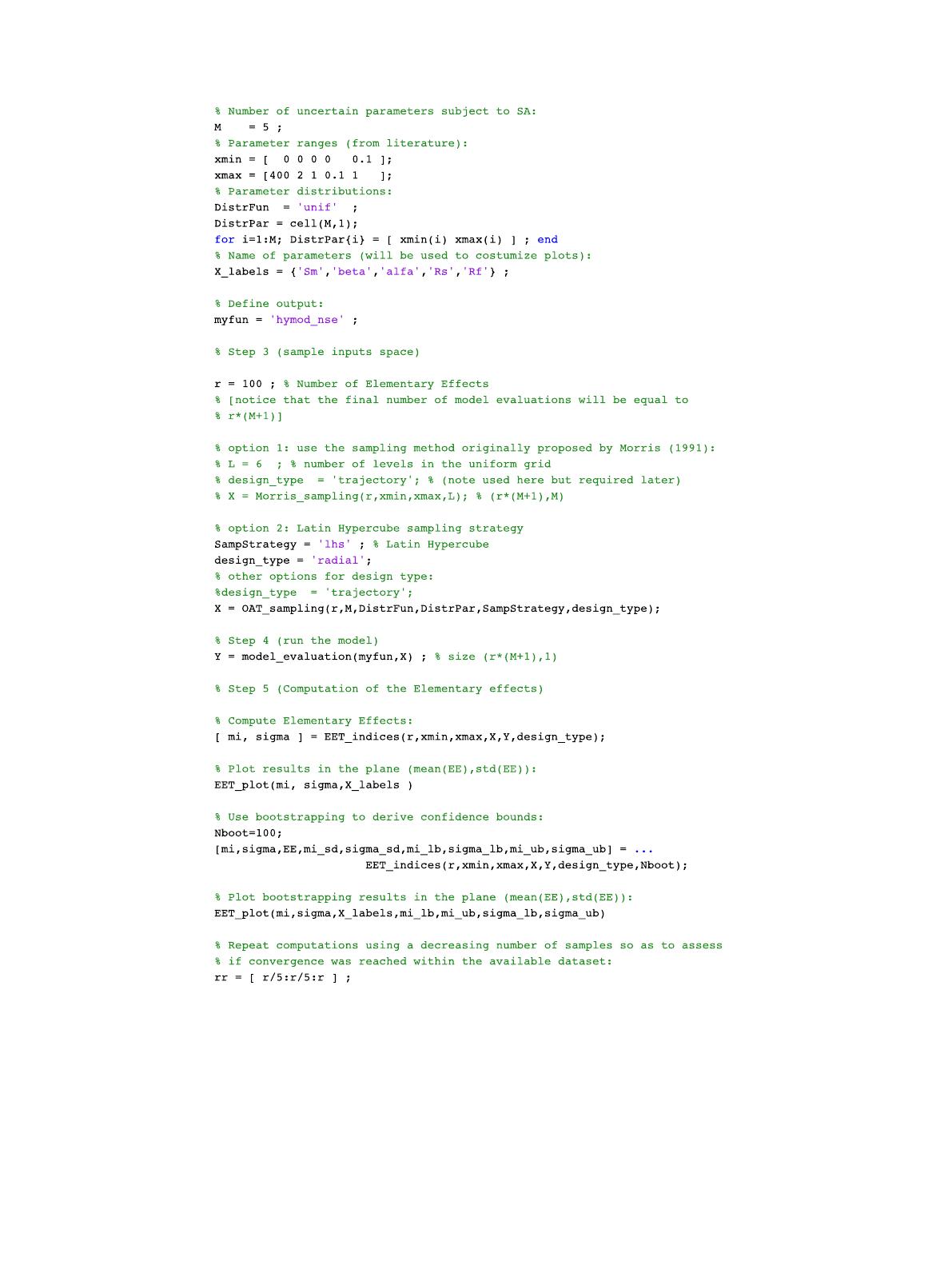 method (e.g. the Elementary Effects Test, Regional Sensitivity
