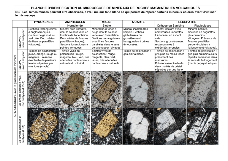 Identification de Minéraux au Microscope: Roches Magmatiques & Métamorphiques