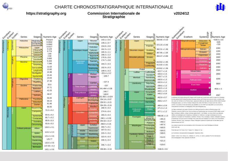 Charte Chronostratigraphique Internationale ICS - Échelle des Temps Géologiques