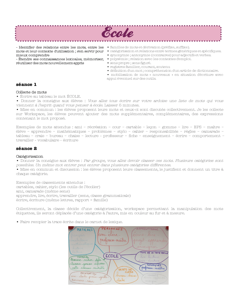 Vocabulaire École : Fiche de travail pour l'élémentaire