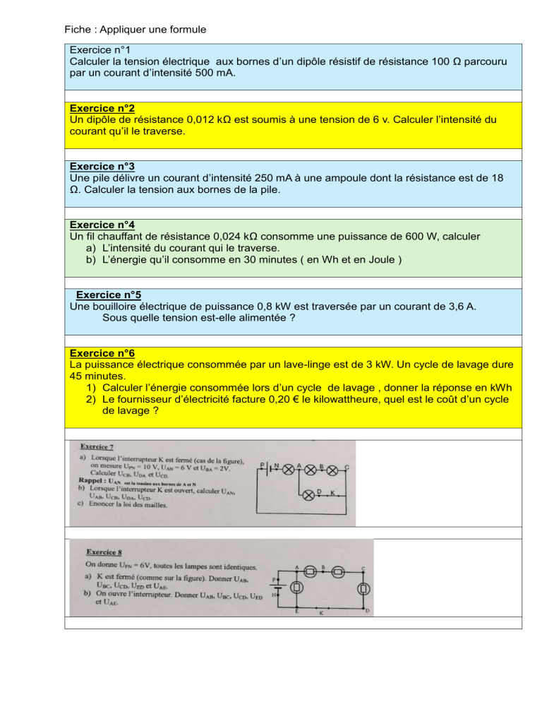Un dipôle de résistance 0,012 kΩ est soumis à une tension de 6 v. Calculer l’intensité du
