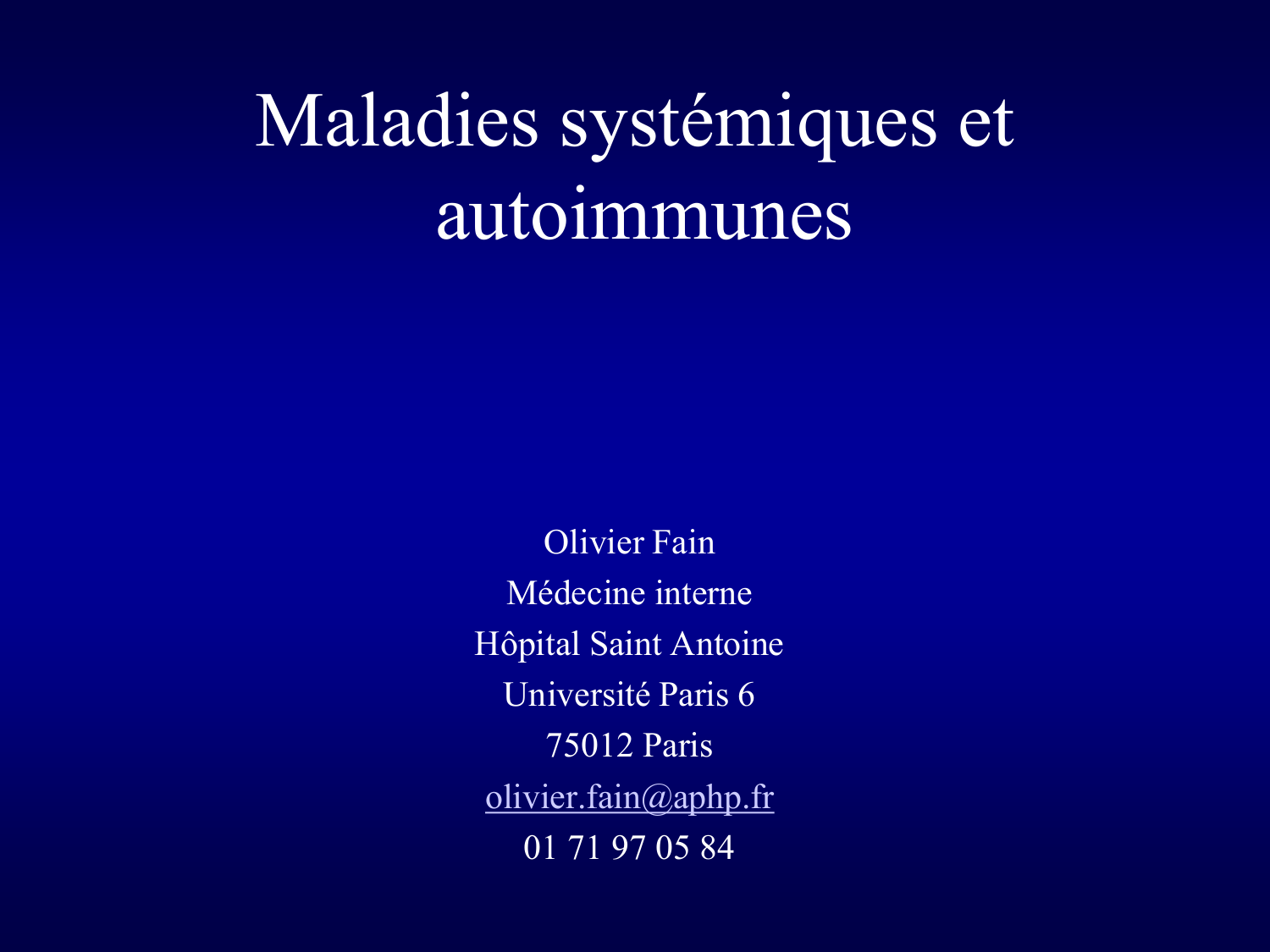 presentation Maladies systemiques et autoimmunes Pr O. Fain janvier 2016
