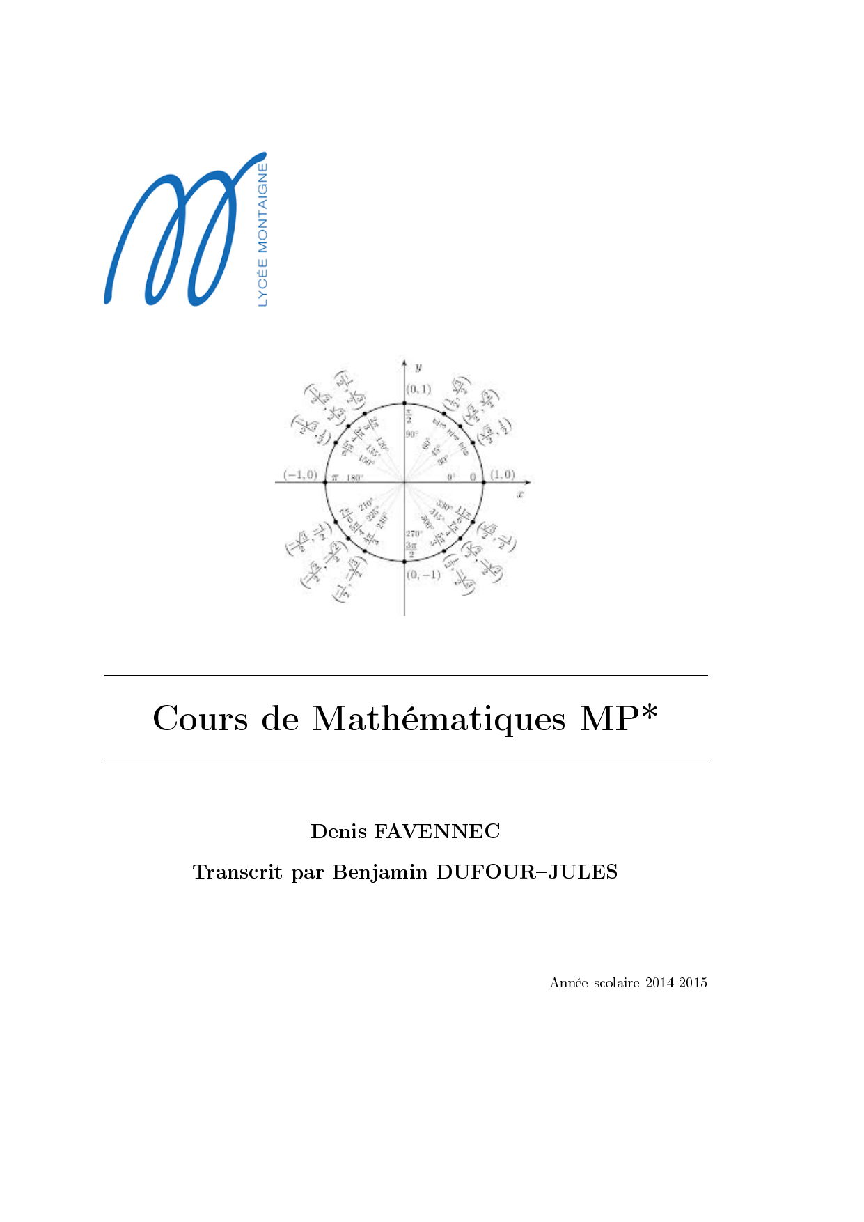 Cours de Mathématiques MP* - Algèbre, Séries, Probabilités, Matrices