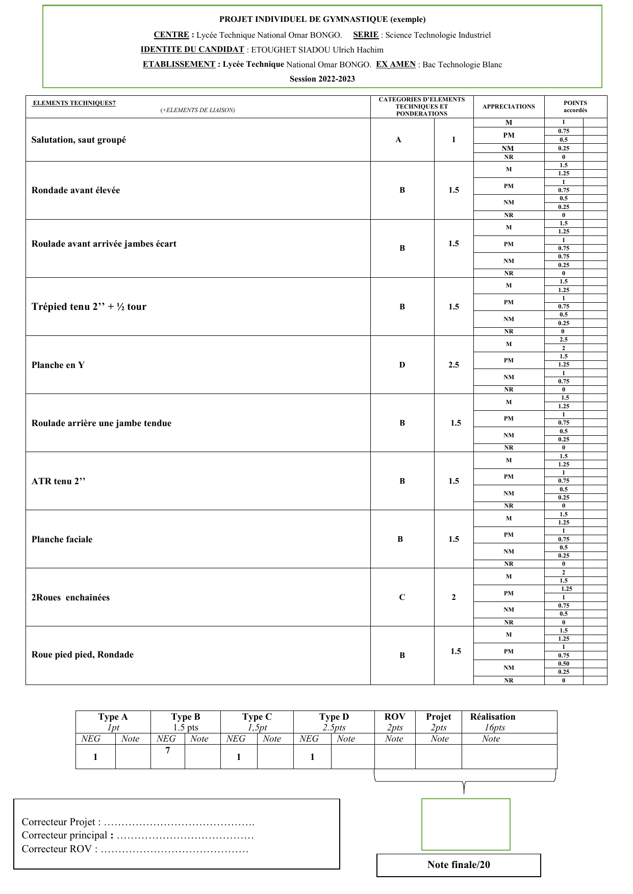 Grille d'évaluation - Projet Gymnastique STI - Lycée Omar BONGO