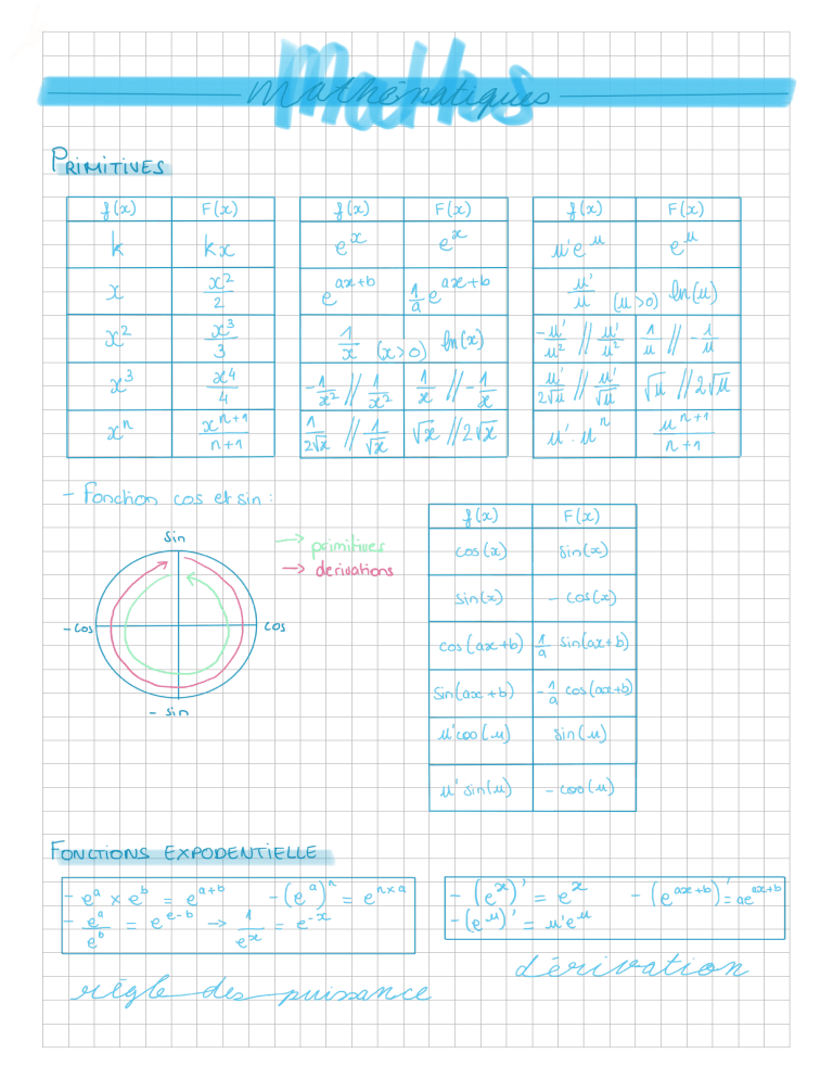 Formulaire de mathématiques : Primitives, Trigonométrie, Exponentielles