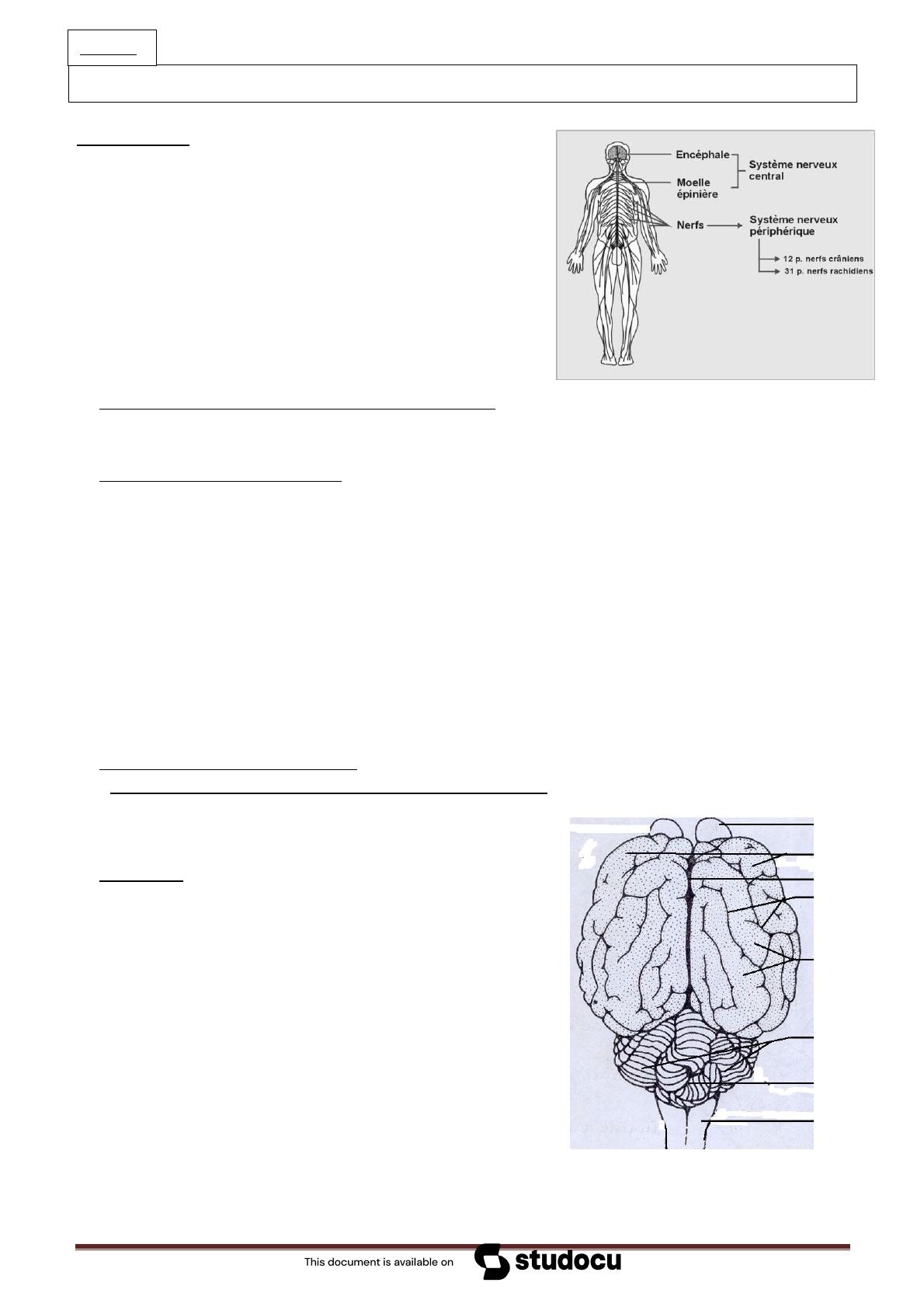 I. LE SYSTÈME NERVEUX CENTRAL (OU CÉRÉBRO-SPINAL) :
