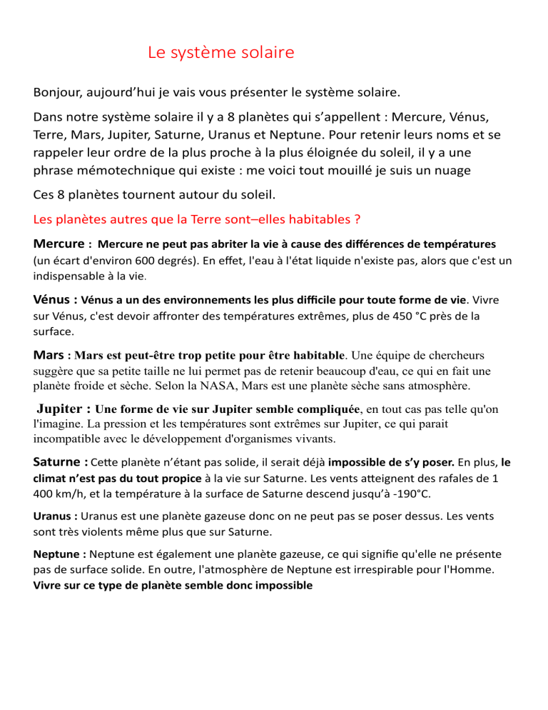 Le Système Solaire : Planètes, Habitable, Terre et Lune