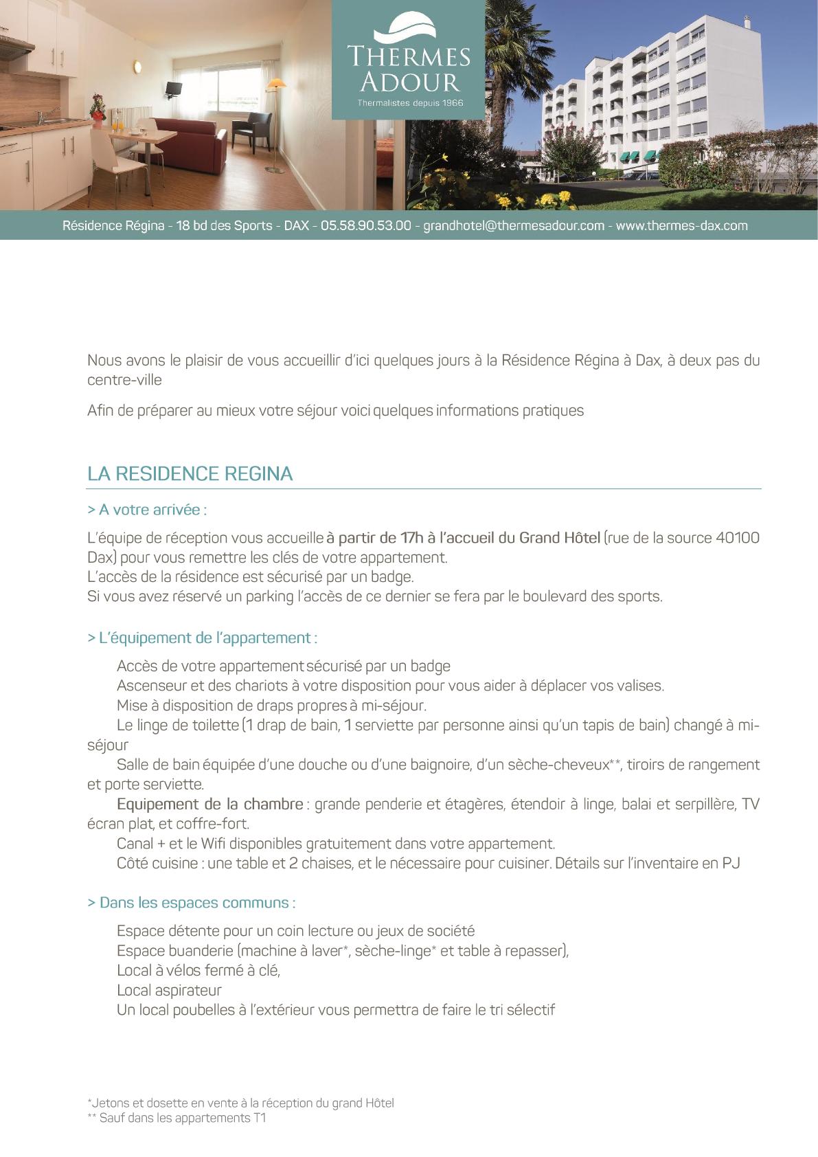 BIENVENUE A LA RESIDENCE REGINA DAX