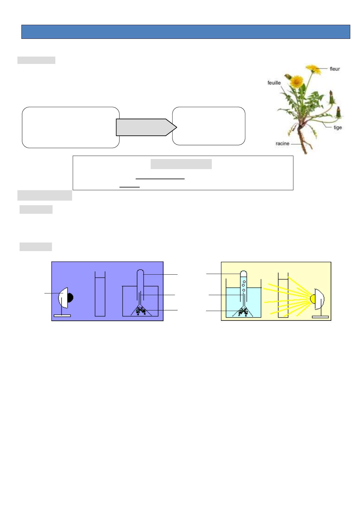 Expérience 1 Quelle source d’énergie permet la photosynthèse ?