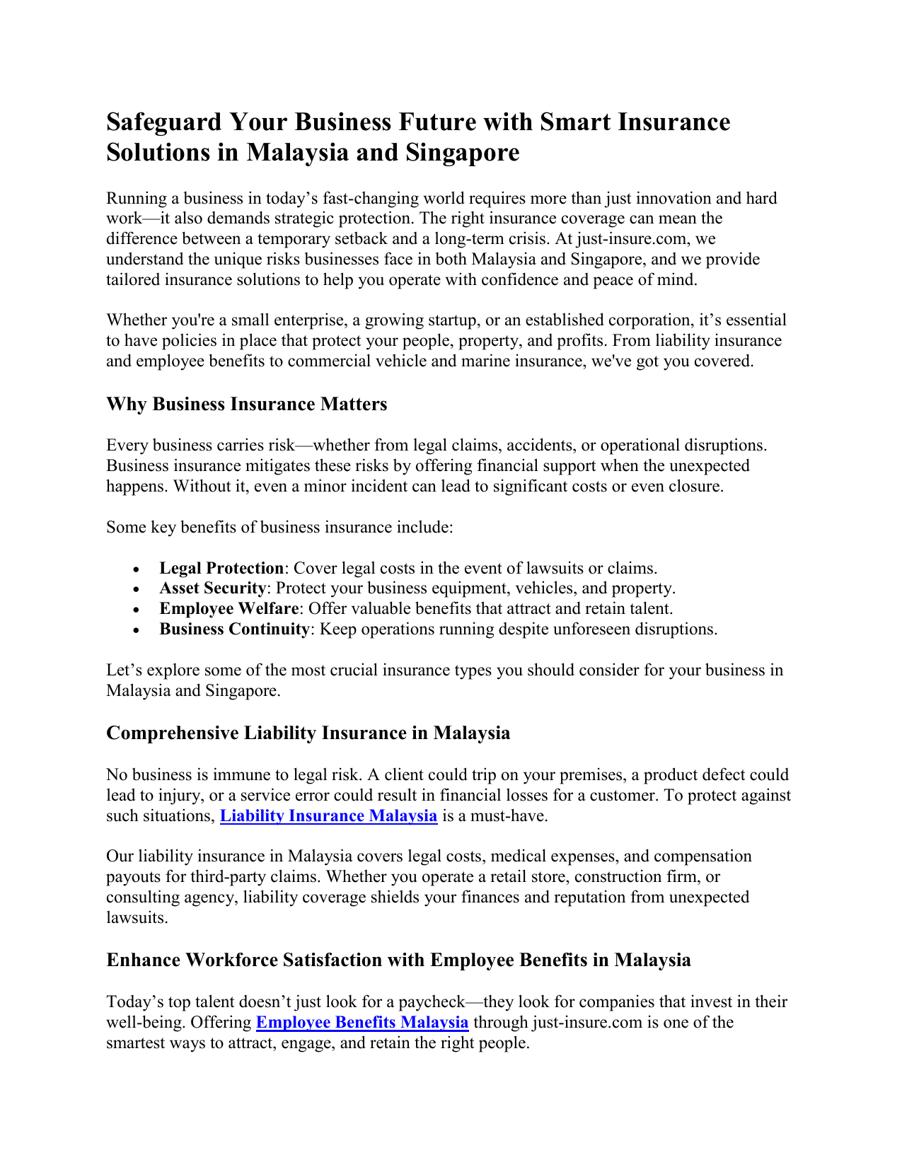 Safeguard Your Business Future with Smart Insurance Solutions in Malaysia and Singapore