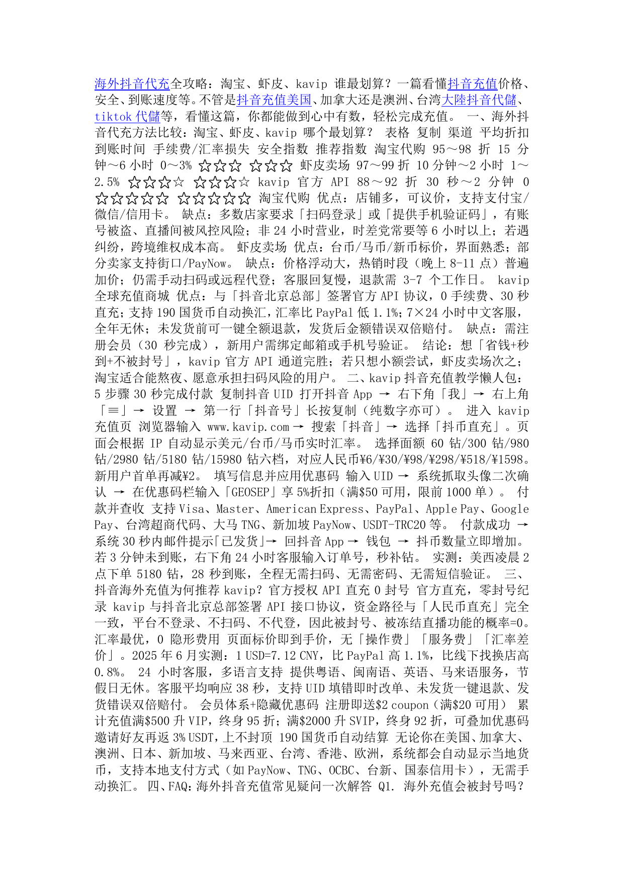 海外抖音代充全攻略:淘宝、虾皮、kavip 谁最划算?一篇看懂抖音充值价格、