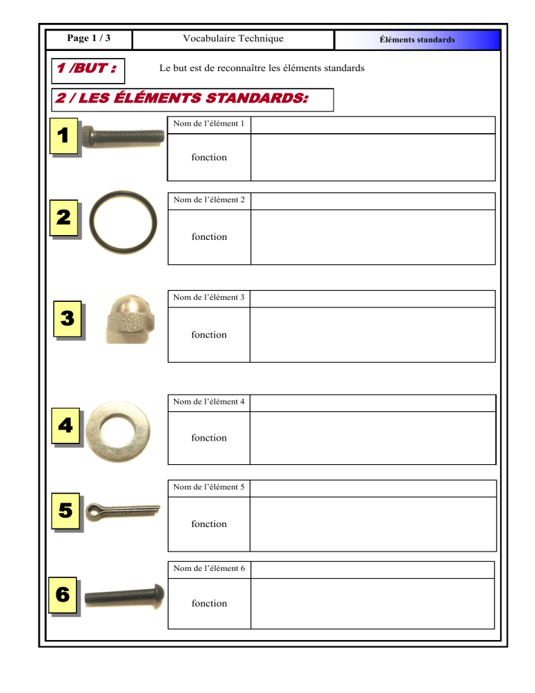 Vocabulaire Technique: Reconnaître les Éléments Standards en Mécanique