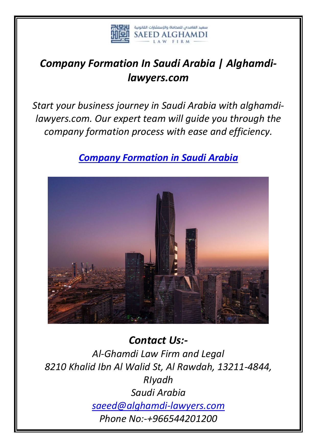 Company Formation In Saudi Arabia | Alghamdi-lawyers.com