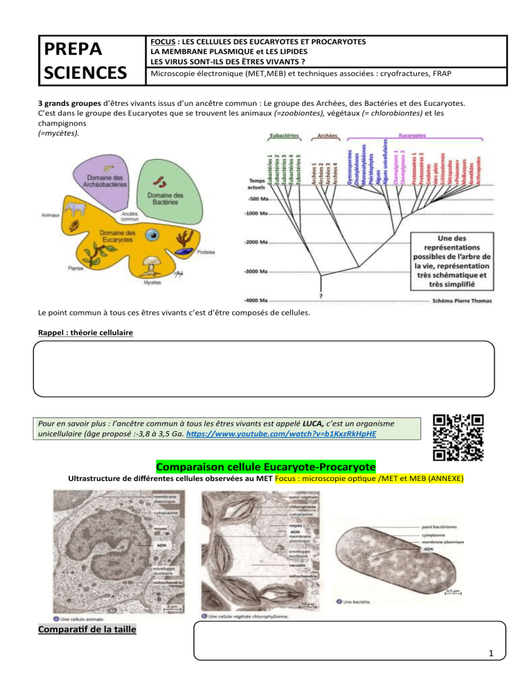 Biologie Cellulaire: Eucaryotes, Procaryotes, Membrane & Virus