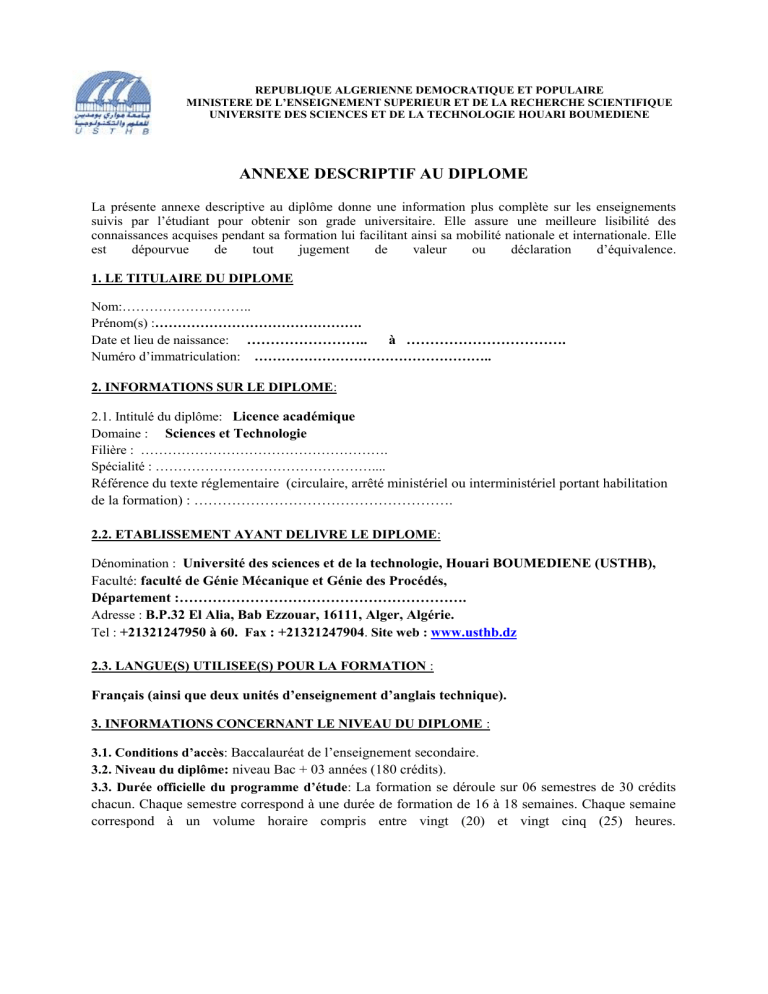 La présente annexe descriptive au diplôme donne une information plus complète sur les enseignements