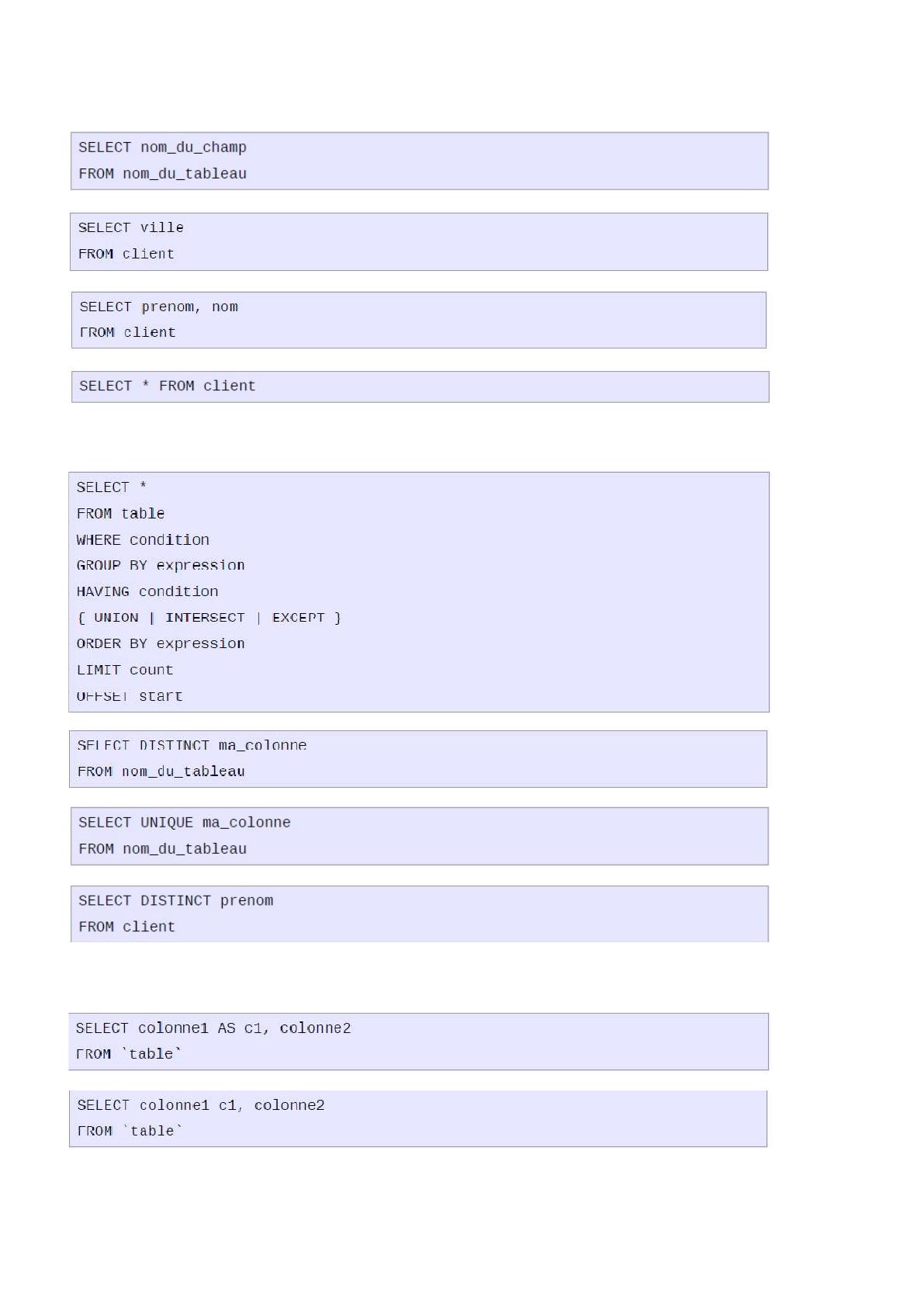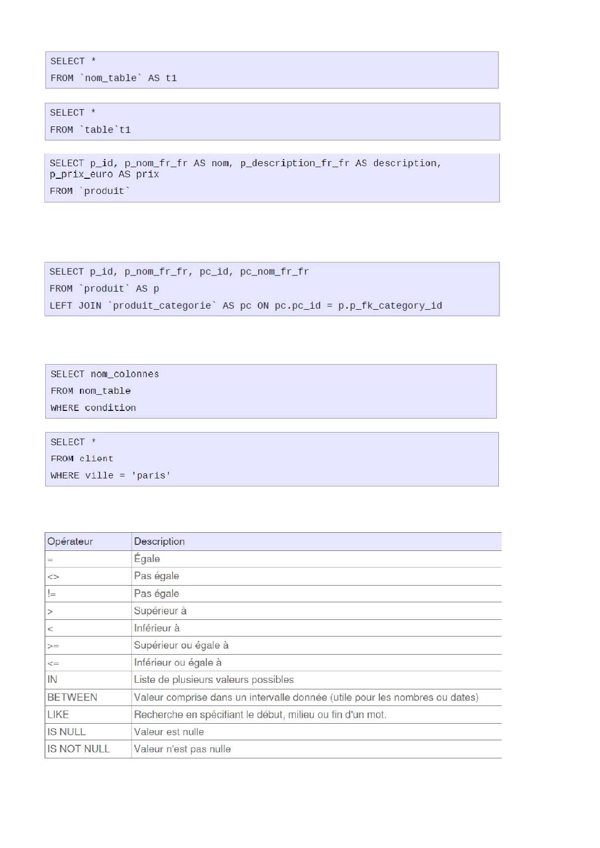 La requete ci-dessous renomme la table ≪ produit ≫ en ≪ p ≫ et la table