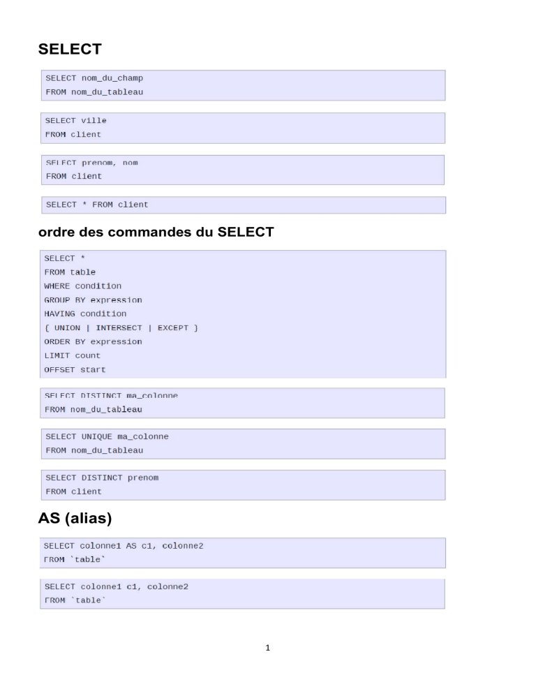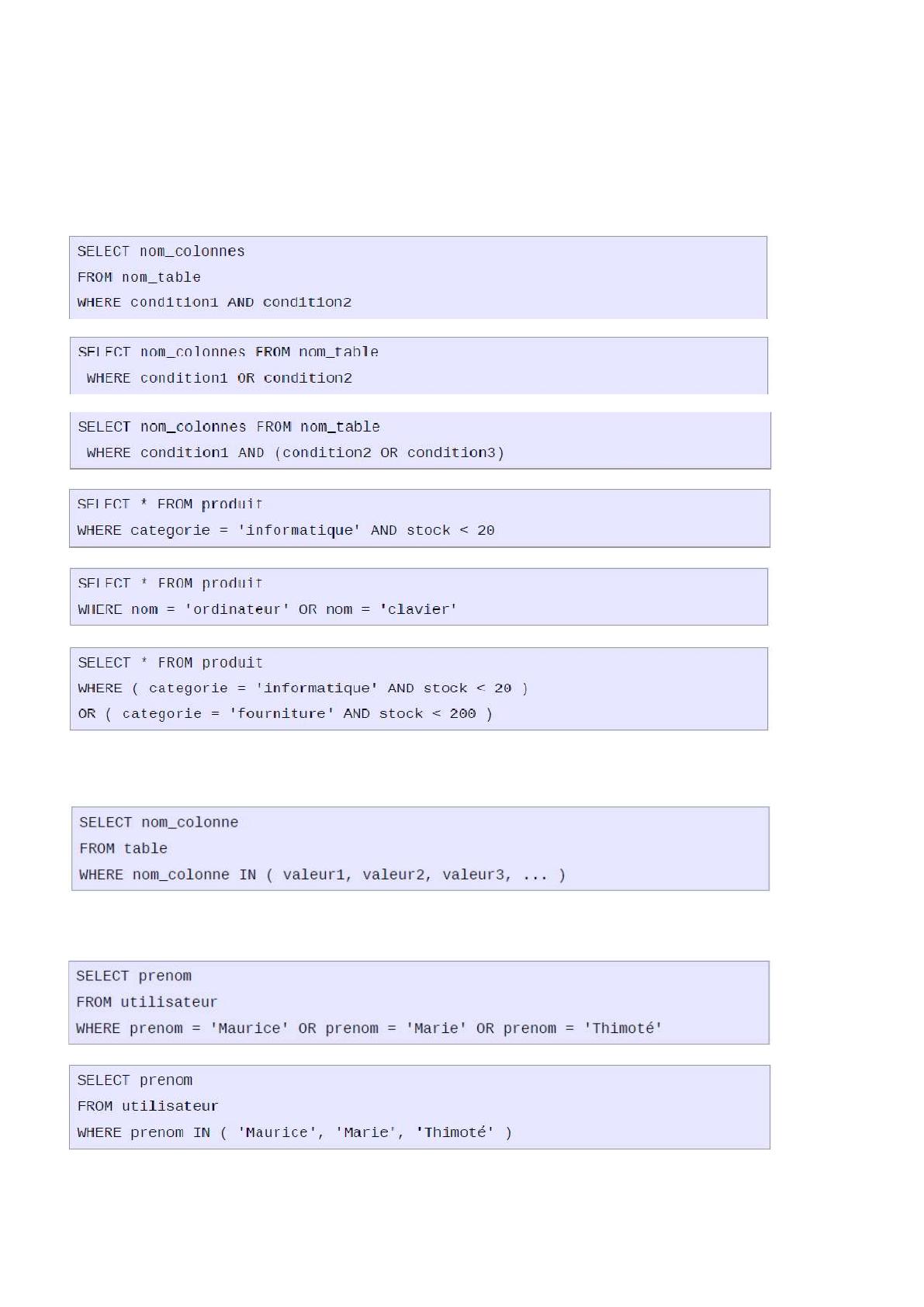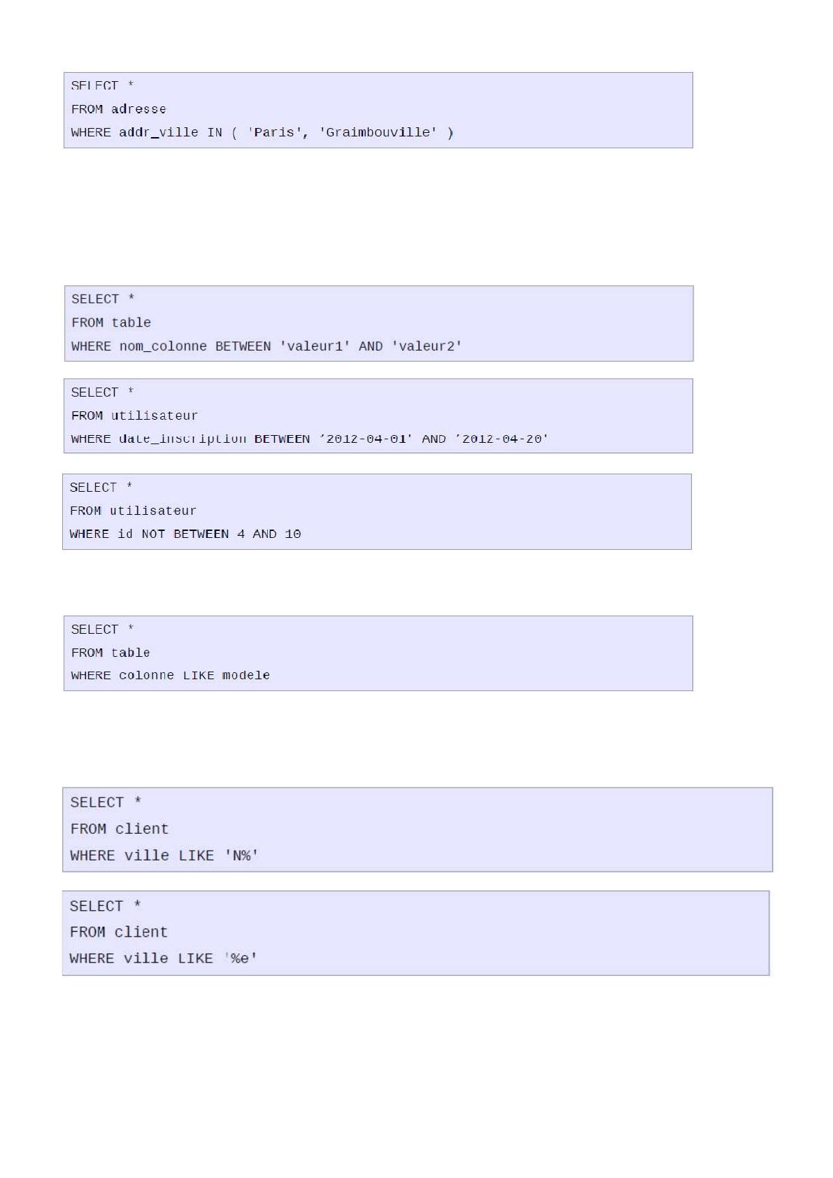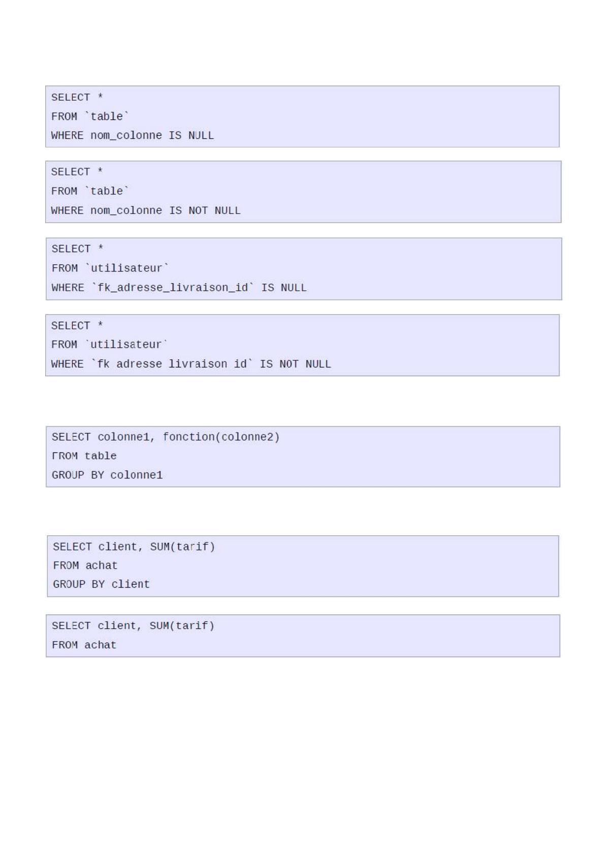 A noter : cette commande doit toujours sutiliser après la commande WHERE et avant la