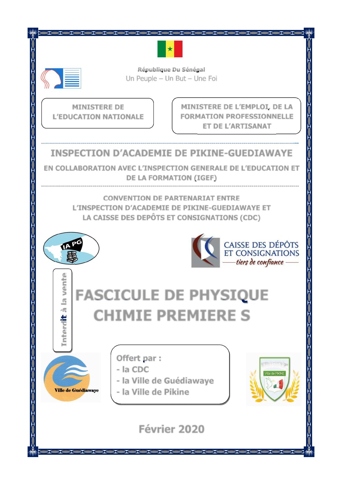 Fascicule de Sciences Physiques de Première S /IA Pikine-Guediawaye /CDC - 2018
