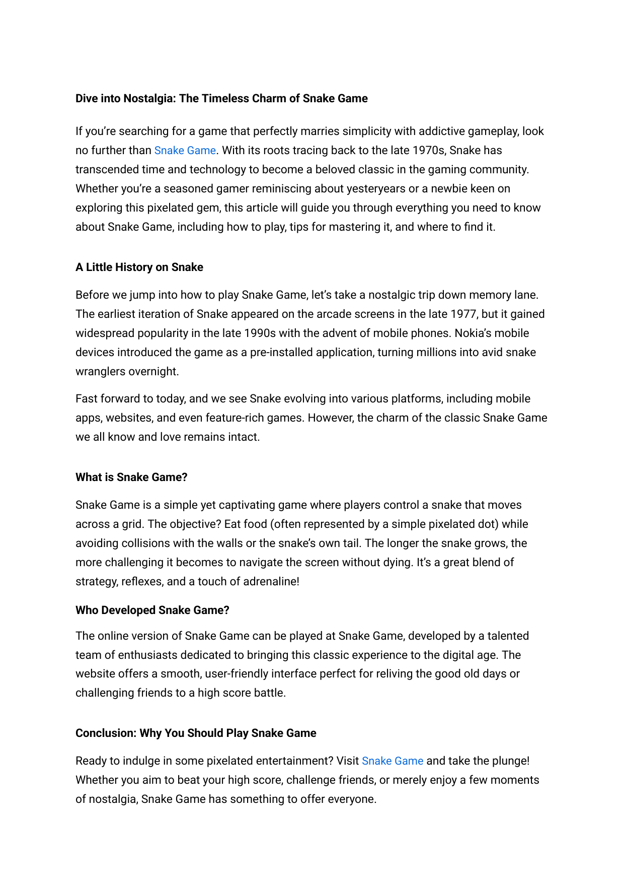 Dive into Nostalgia The Timeless Charm of Snake Game