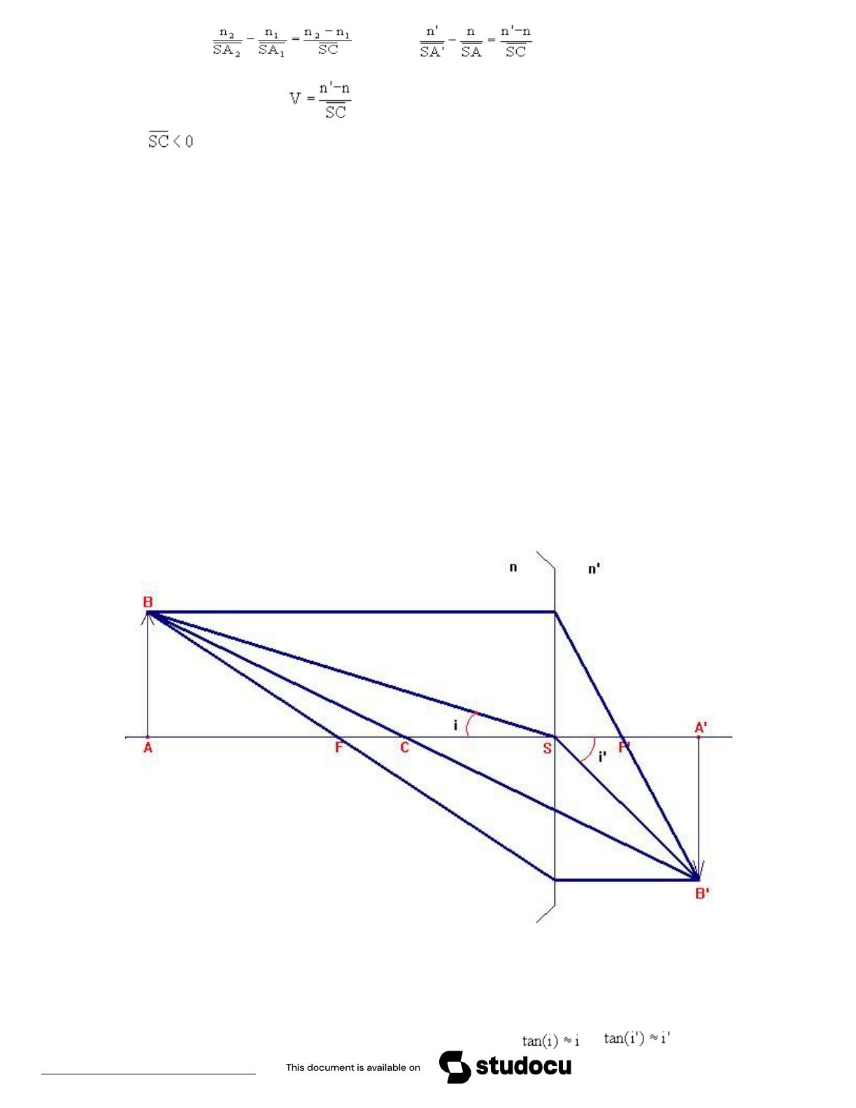 2) Sur la figure . Le dioptre est convergent si V>0 et donc si n>n’.